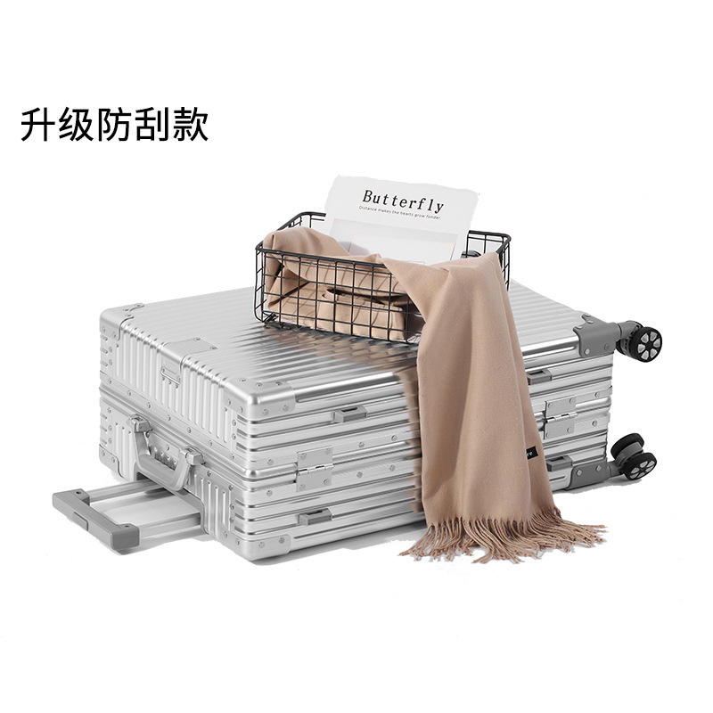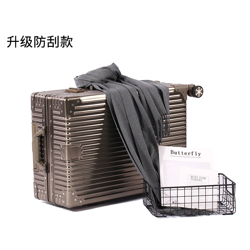 승객 모든 알루미늄 마그네슘 금속 수하물 케이스 남성용 클래식 밀봉 형 내구성 트롤리 케이스 오른쪽 앵글 가방 여성용 강력한 가방