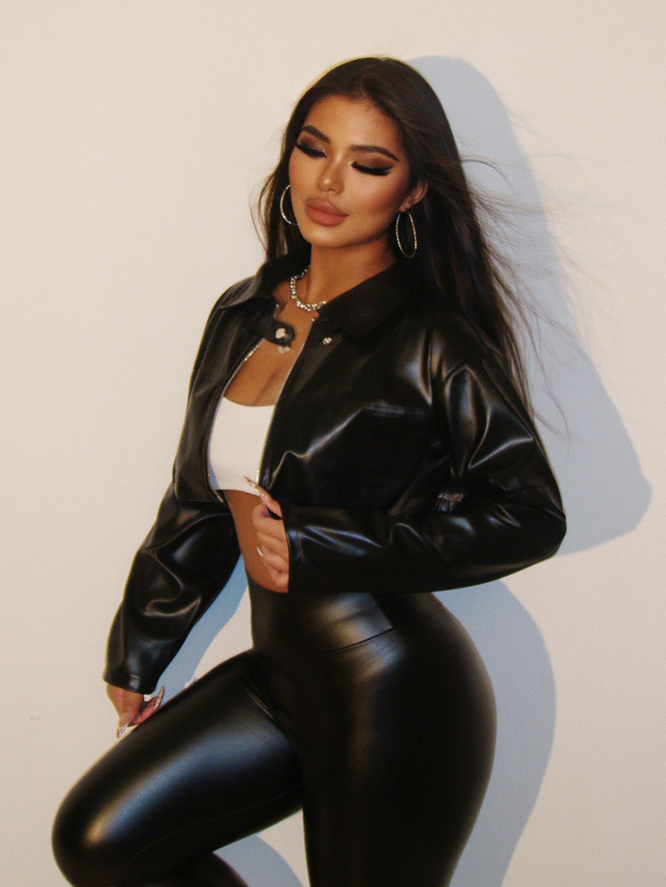유럽과 미국 스타일 2024 가을 AliExpress 폭발 여성 섹시한 배꼽 핫 걸 바이커 싱글 브레스트 재킷 코트