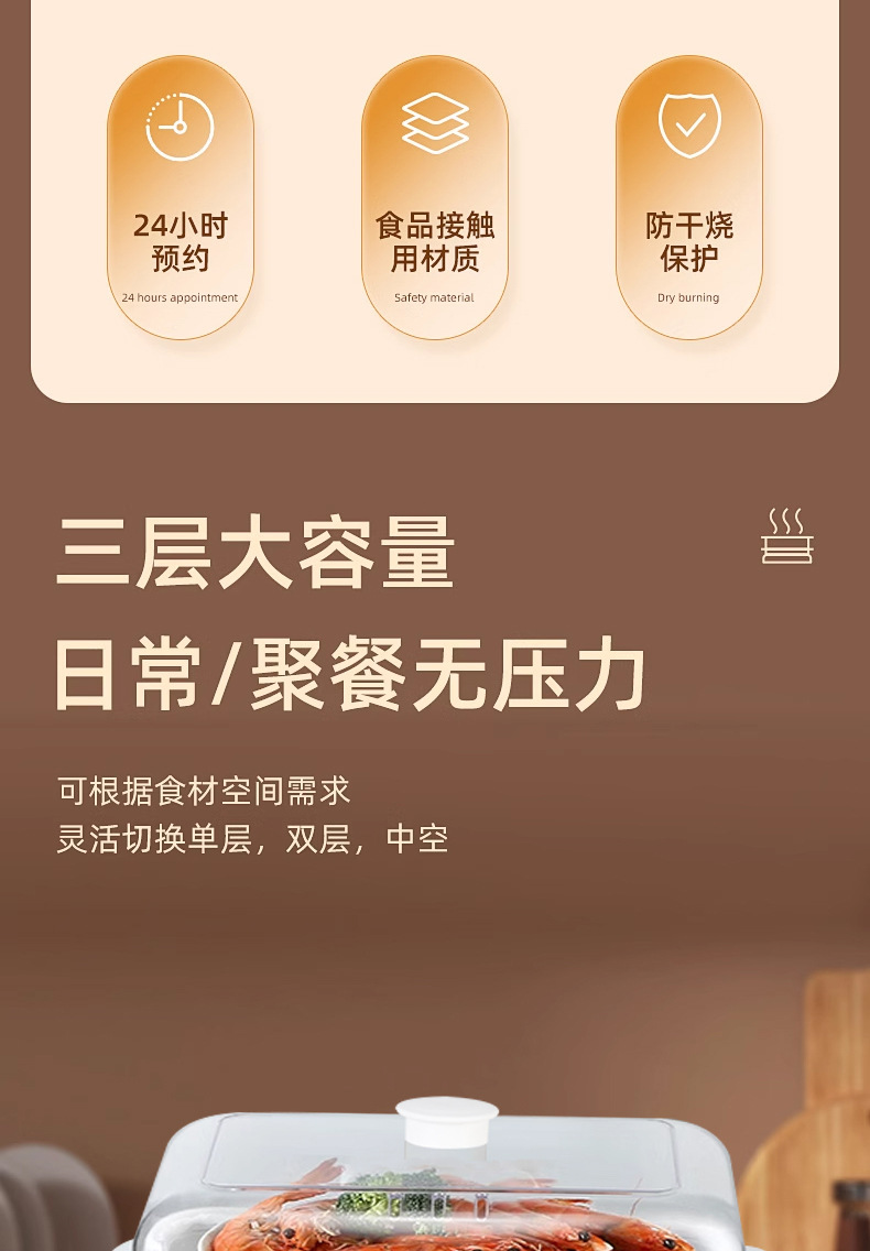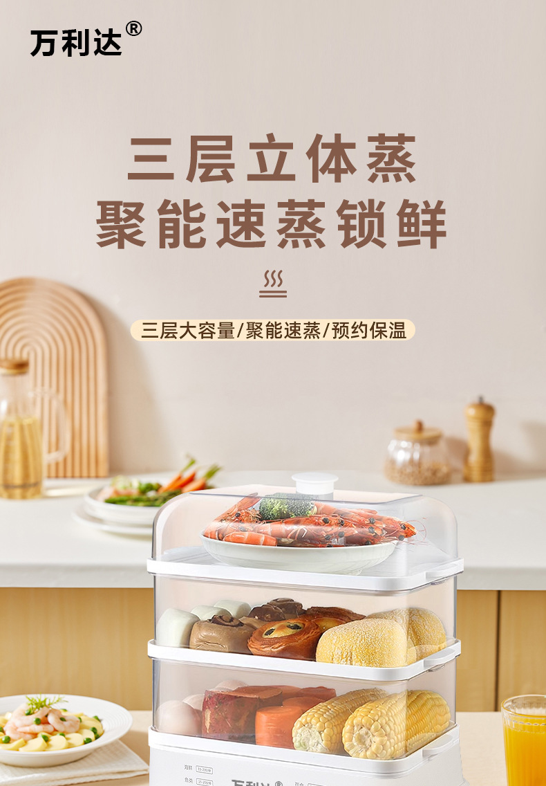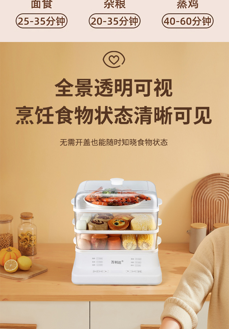 전기찜기 가정용 3단 다기능 30L 전기찜통 대용량 분리형 투명 찜기 도매 선물용