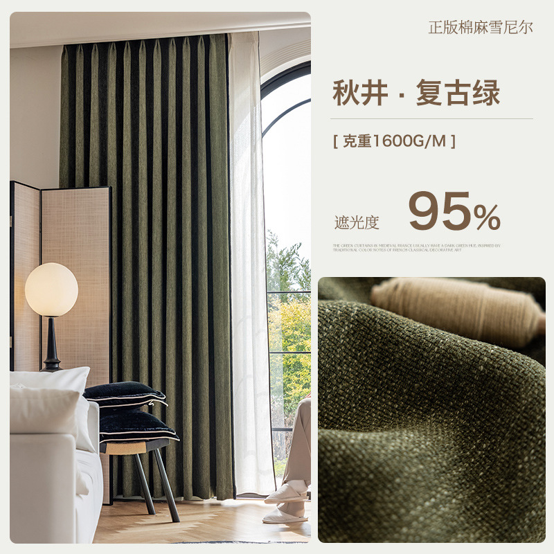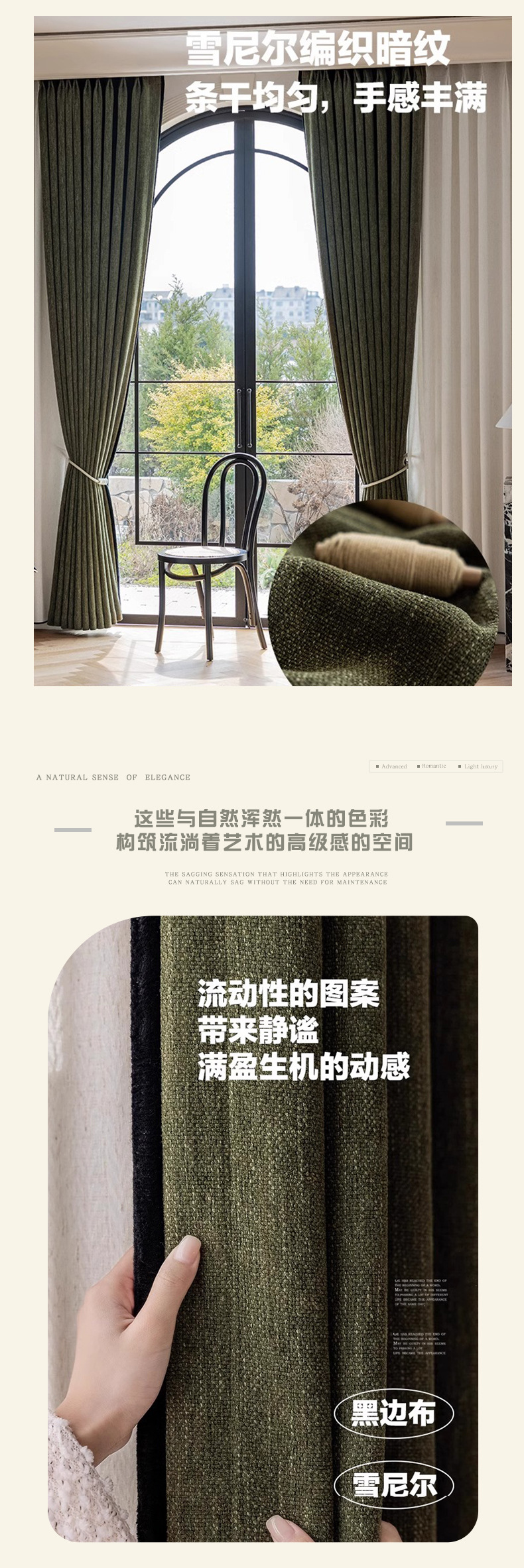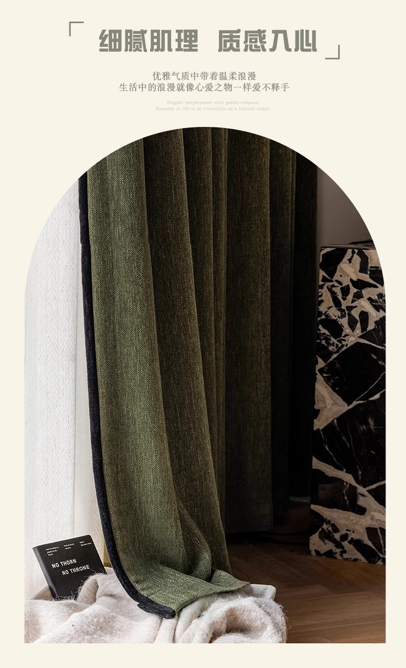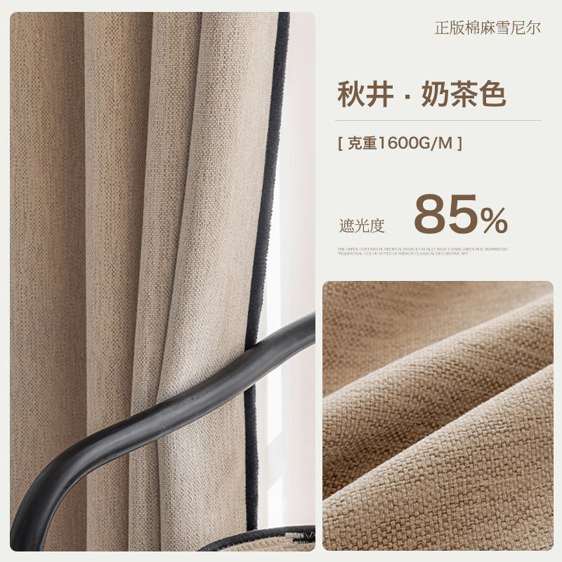블랙 에지 복고풍 코튼과 린넨 셔닐 암막 커튼 프랑스 중세 스타일 거실 침실 하이 엔드 커튼 천스토어 가기