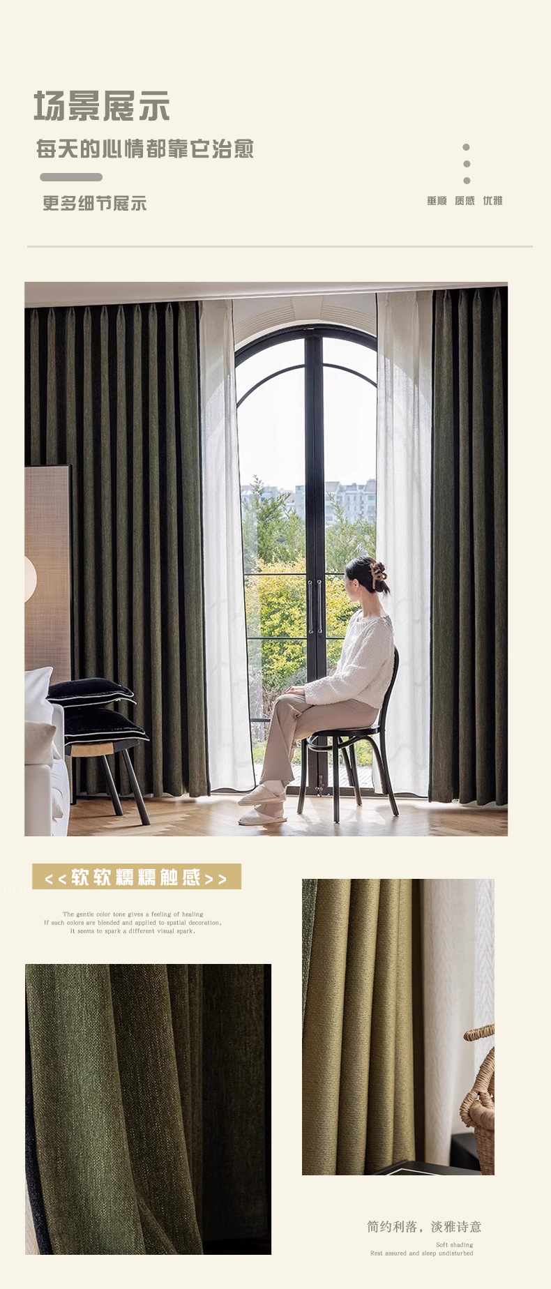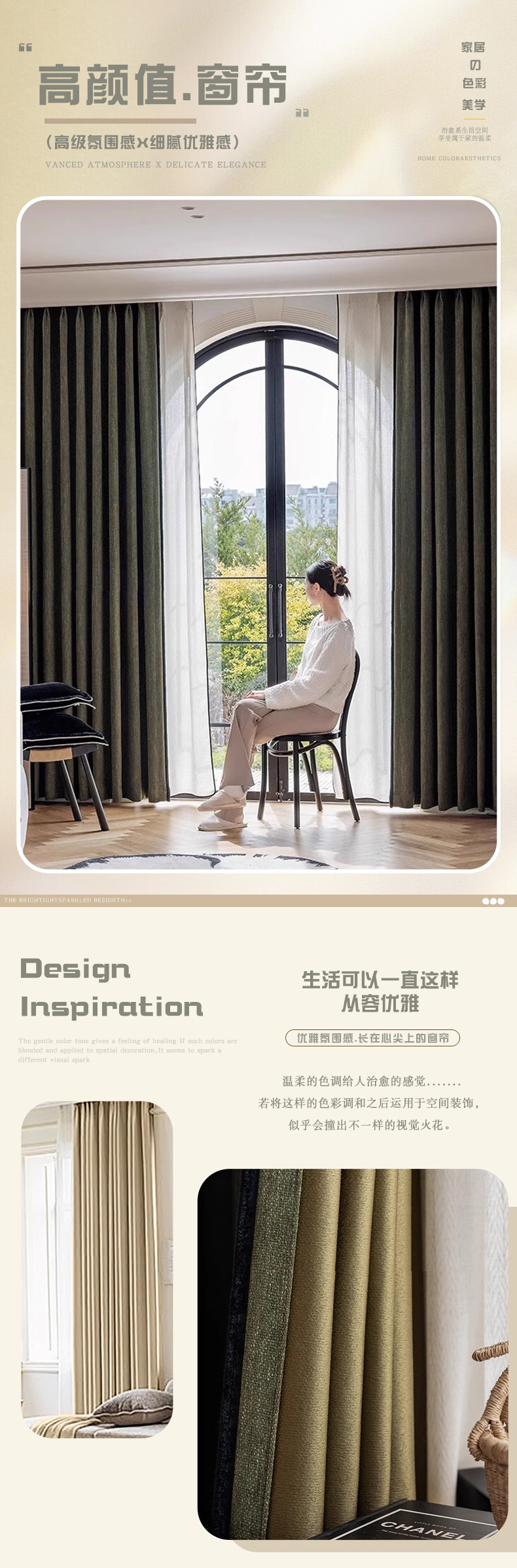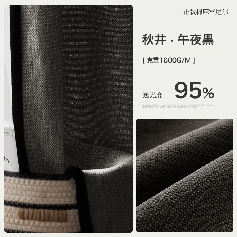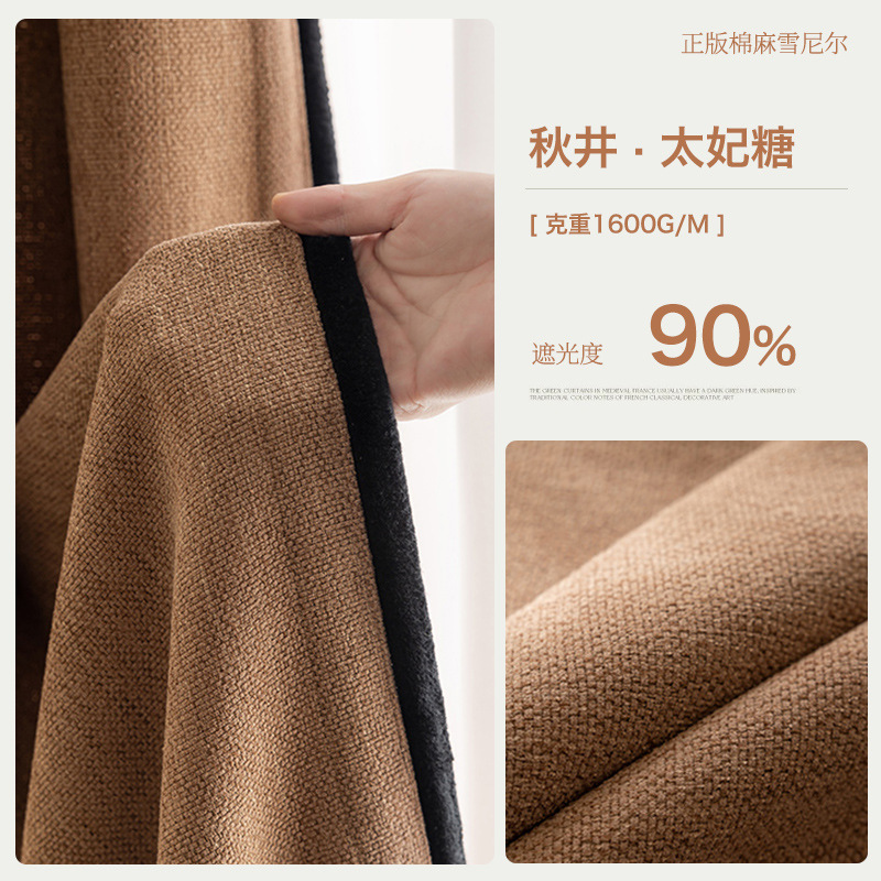 블랙 에지 복고풍 코튼과 린넨 셔닐 암막 커튼 프랑스 중세 스타일 거실 침실 하이 엔드 커튼 천스토어 가기