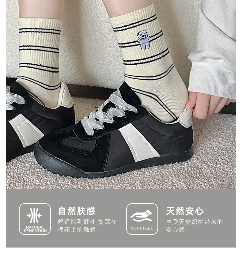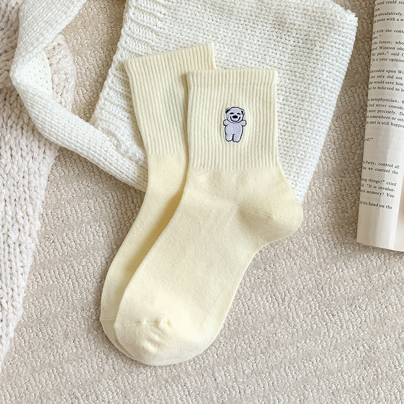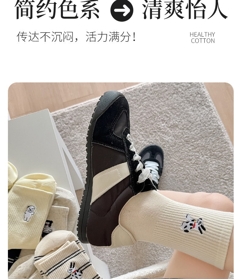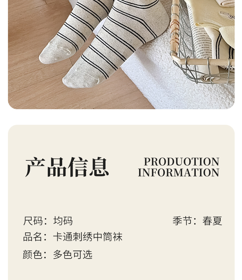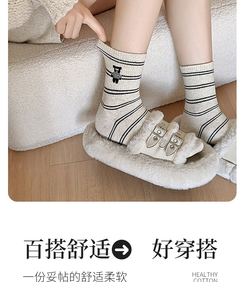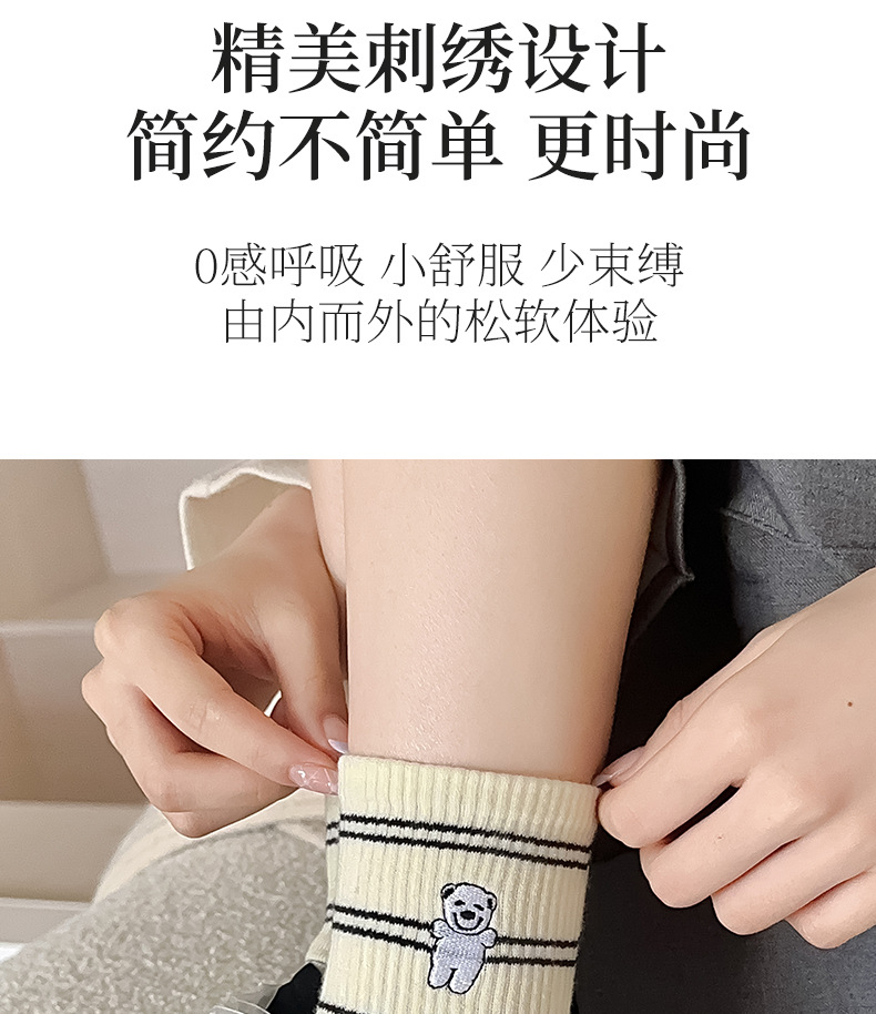 양말 여성용 가을면 양말 귀여운 개 자수 스트라이프 튜브 양말 안티 필링 뼈없는 여성용 양말 도매