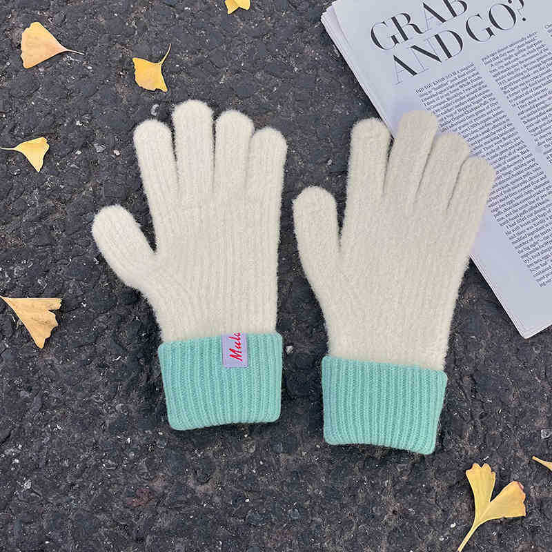 니트 캐시미어 장갑 여성용 겨울 새로운 터치 스크린 기모 따뜻한 두꺼운 방한 손가락 한국 스타일 울 장갑 트렌디스토어 가기