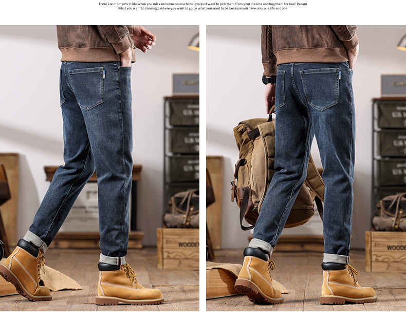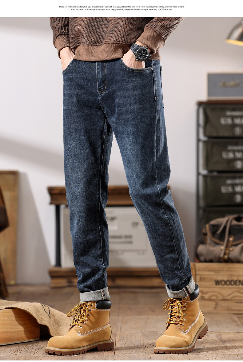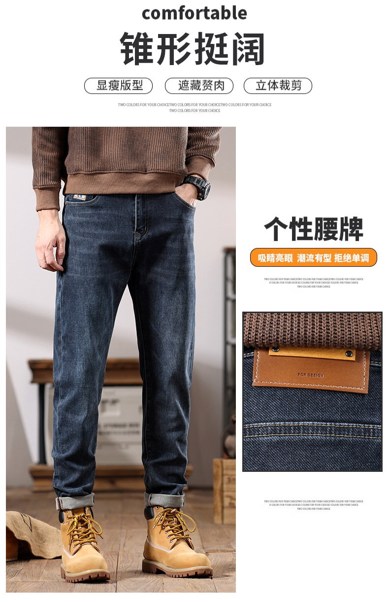 가을 겨울 남성용 마이크로 테이퍼드 패셔너블한 청바지 스트레이트 데님 롱 팬츠