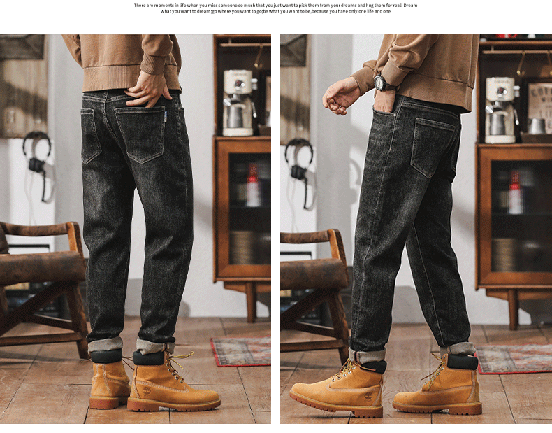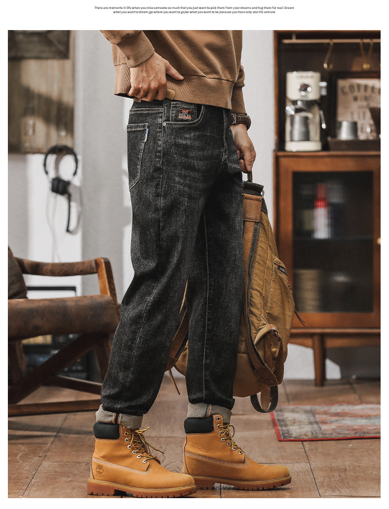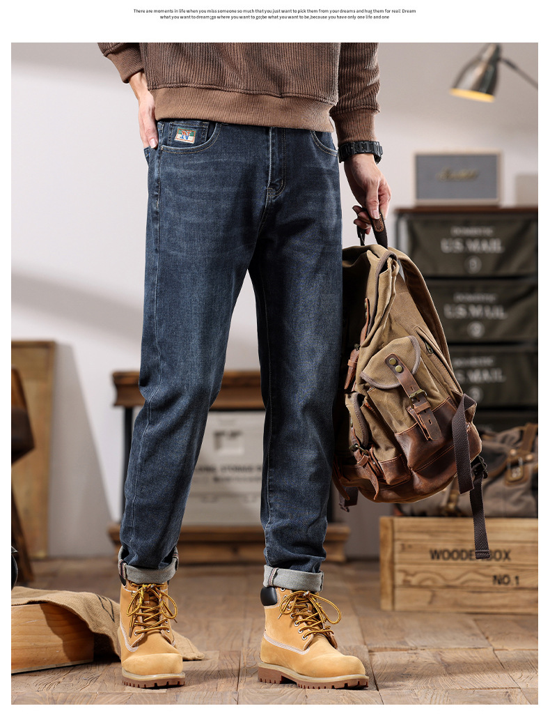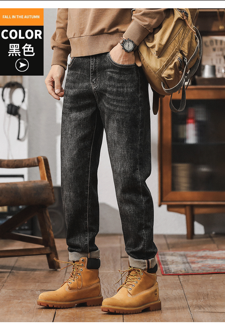 가을 겨울 남성용 마이크로 테이퍼드 패셔너블한 청바지 스트레이트 데님 롱 팬츠스토어 가기