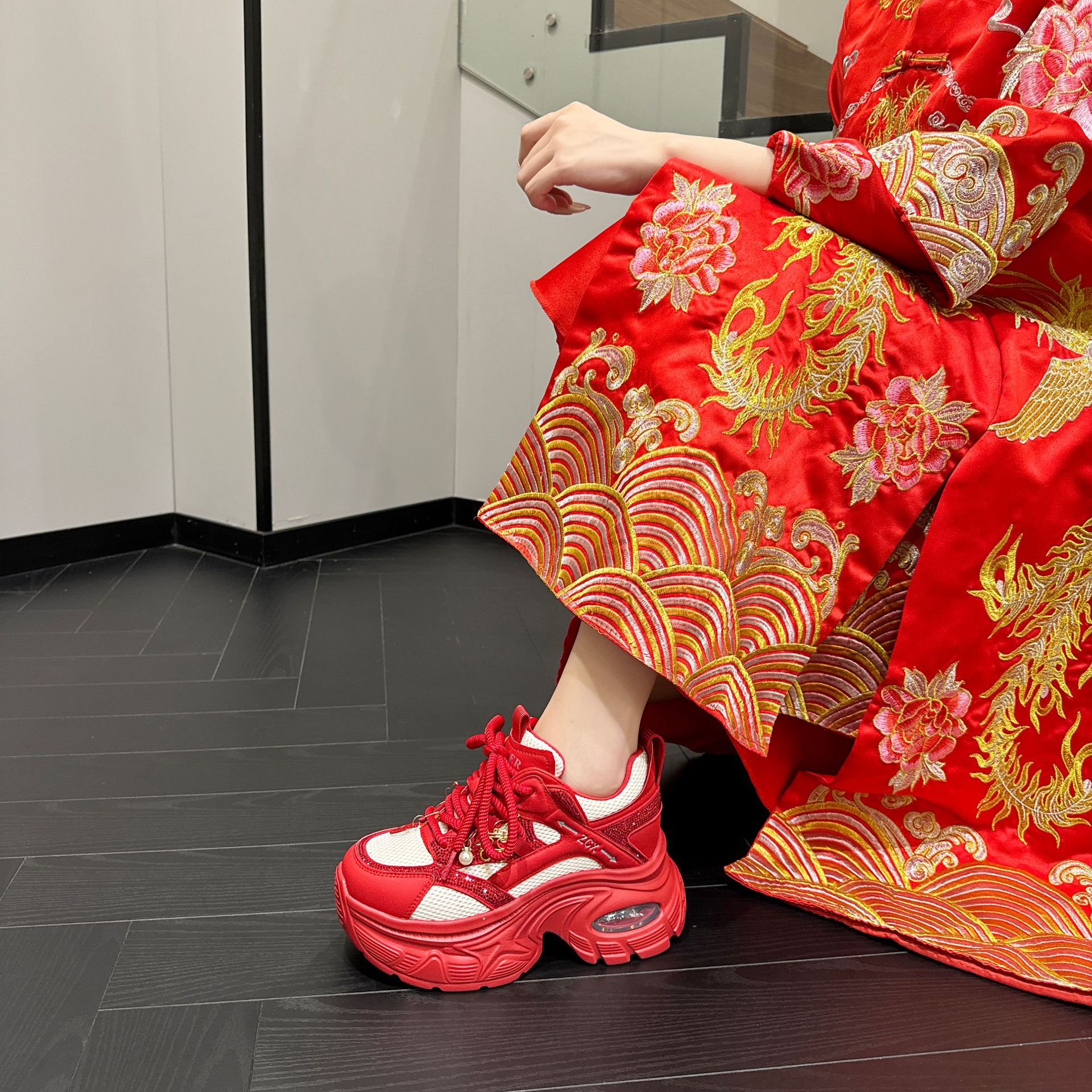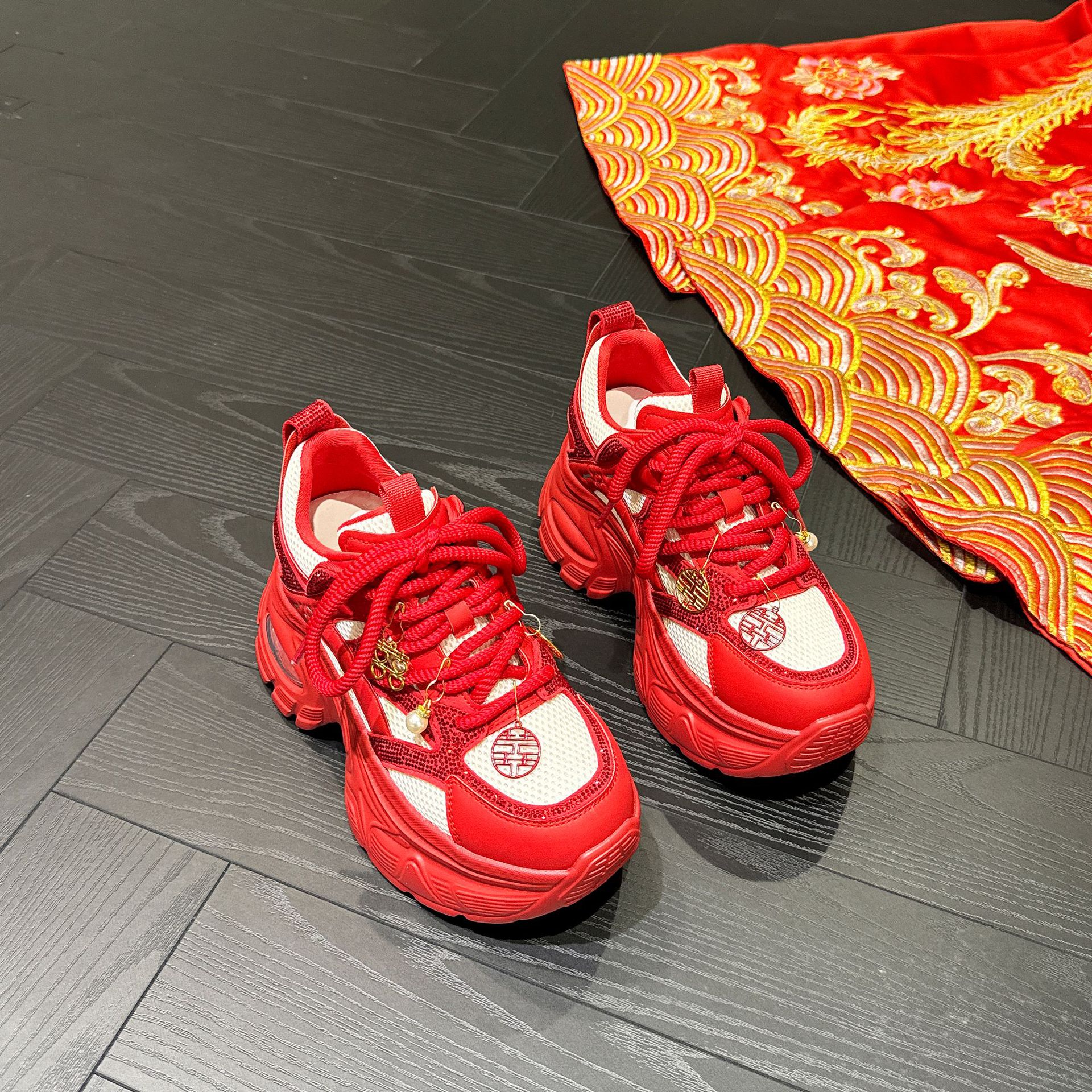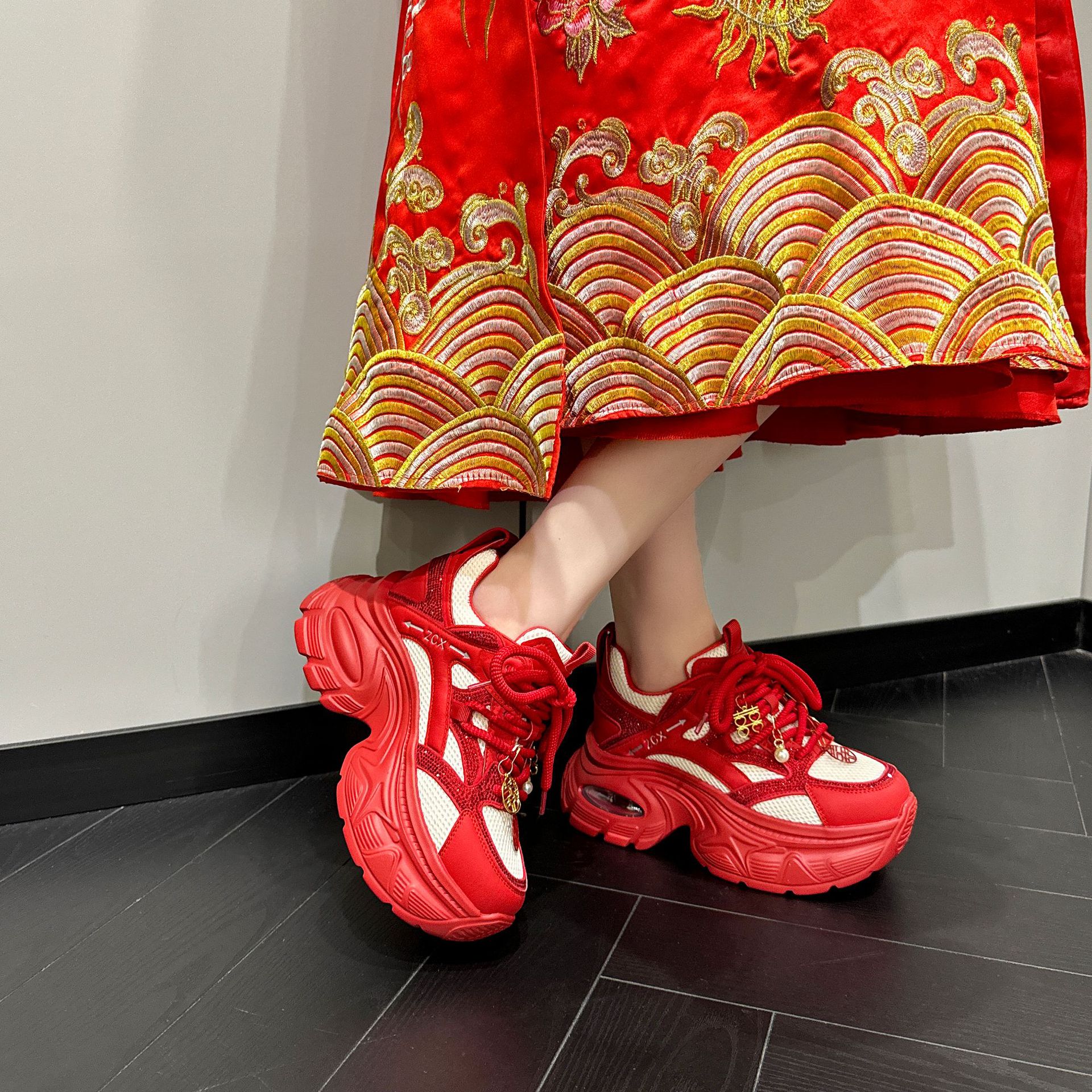 2025년 신상 여성용 축혼식 신발, 빨간색 하이힐, 키높이 두꺼운 밑창 운동화, 신부 들러리 신발스토어 가기