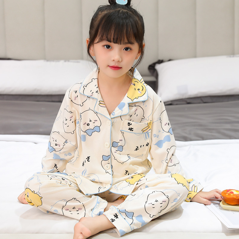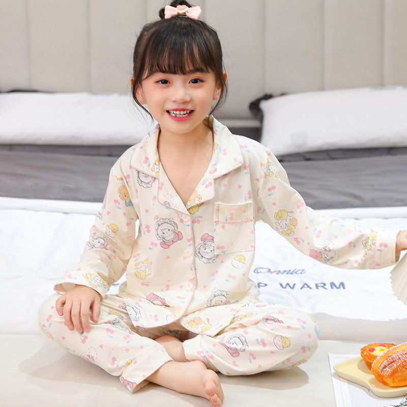 소녀 잠옷 봄과 가을면 긴 소매 바지 어린이 세트 공주 소녀 아기 중 큰 어린이 카디건 홈 옷스토어 가기