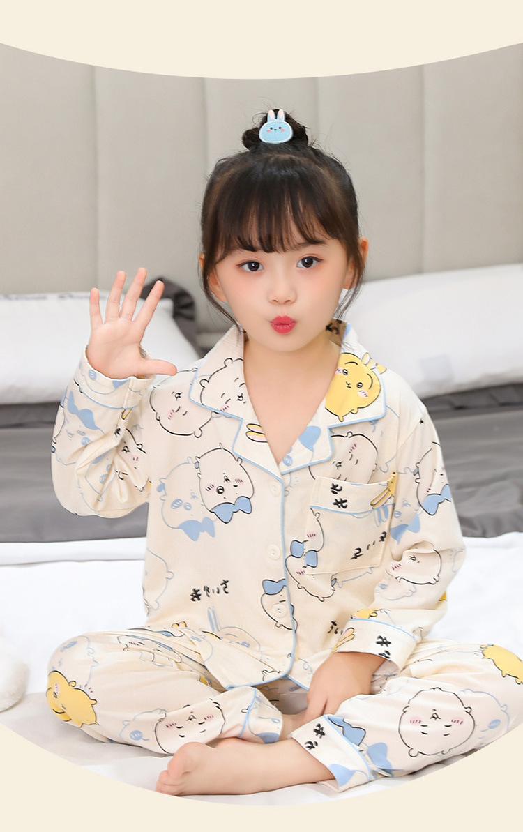 소녀 잠옷 봄과 가을면 긴 소매 바지 어린이 세트 공주 소녀 아기 중 큰 어린이 카디건 홈 옷