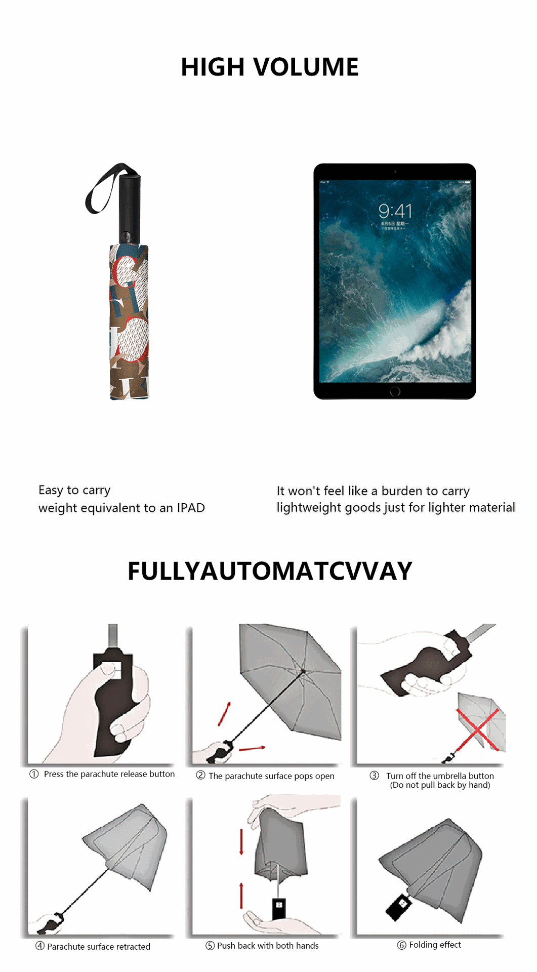 CHHC 트렌디 브랜드 인쇄 햇빛 검은 고무 완전 자동 접는 선 스크린 및 자외선 보호 및 비 보호 우산스토어 가기