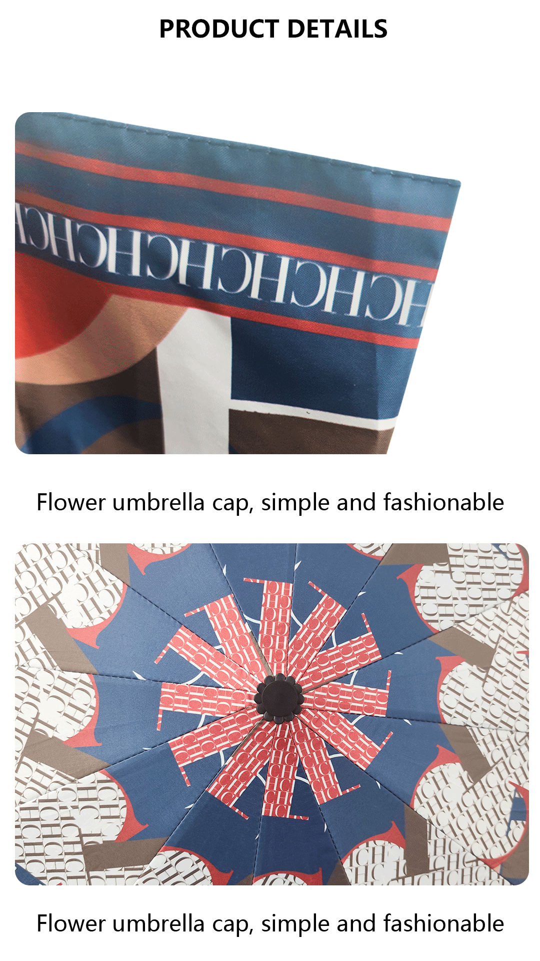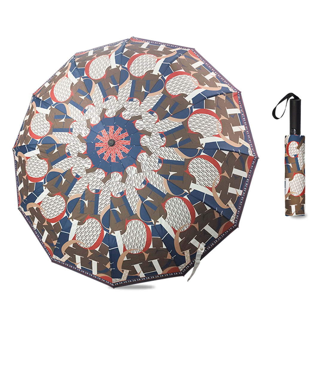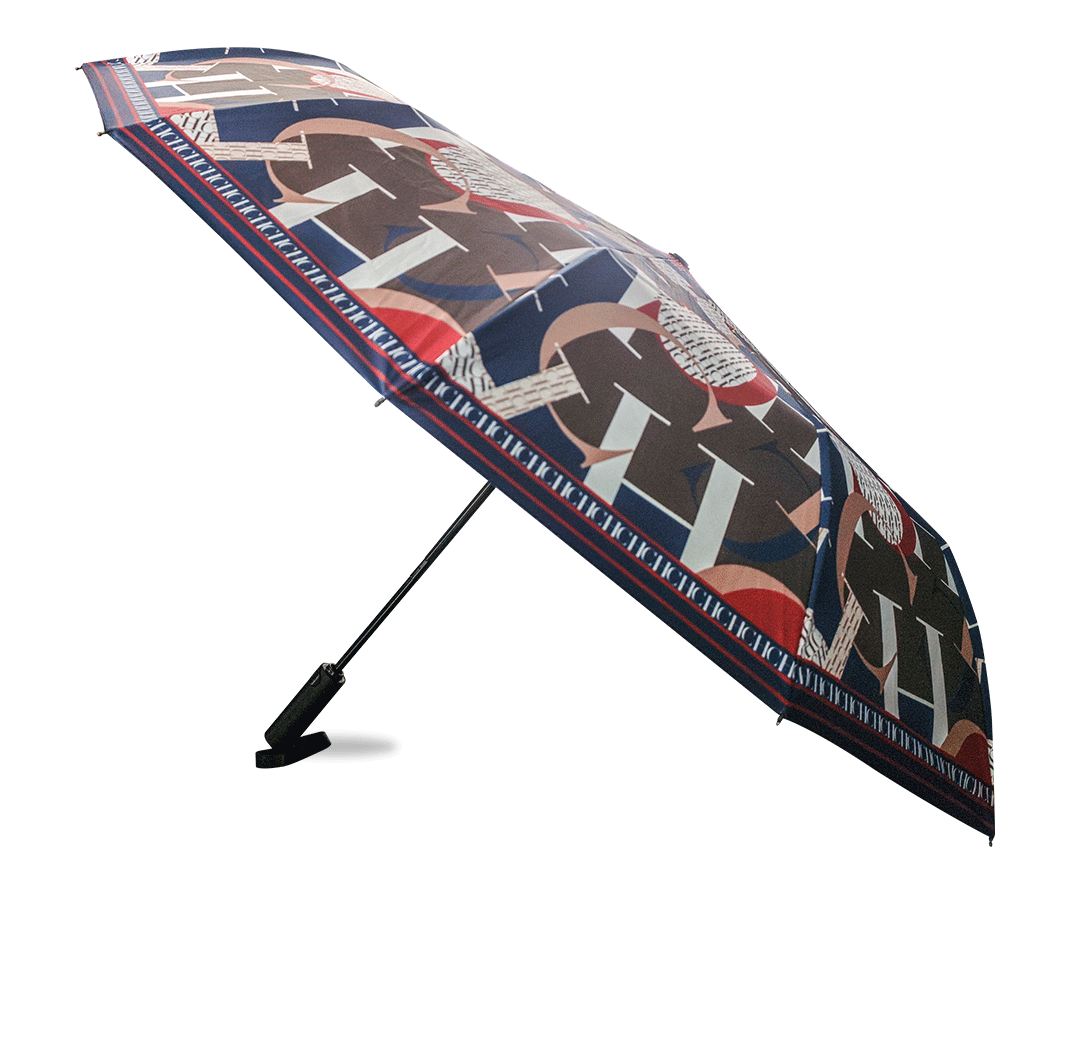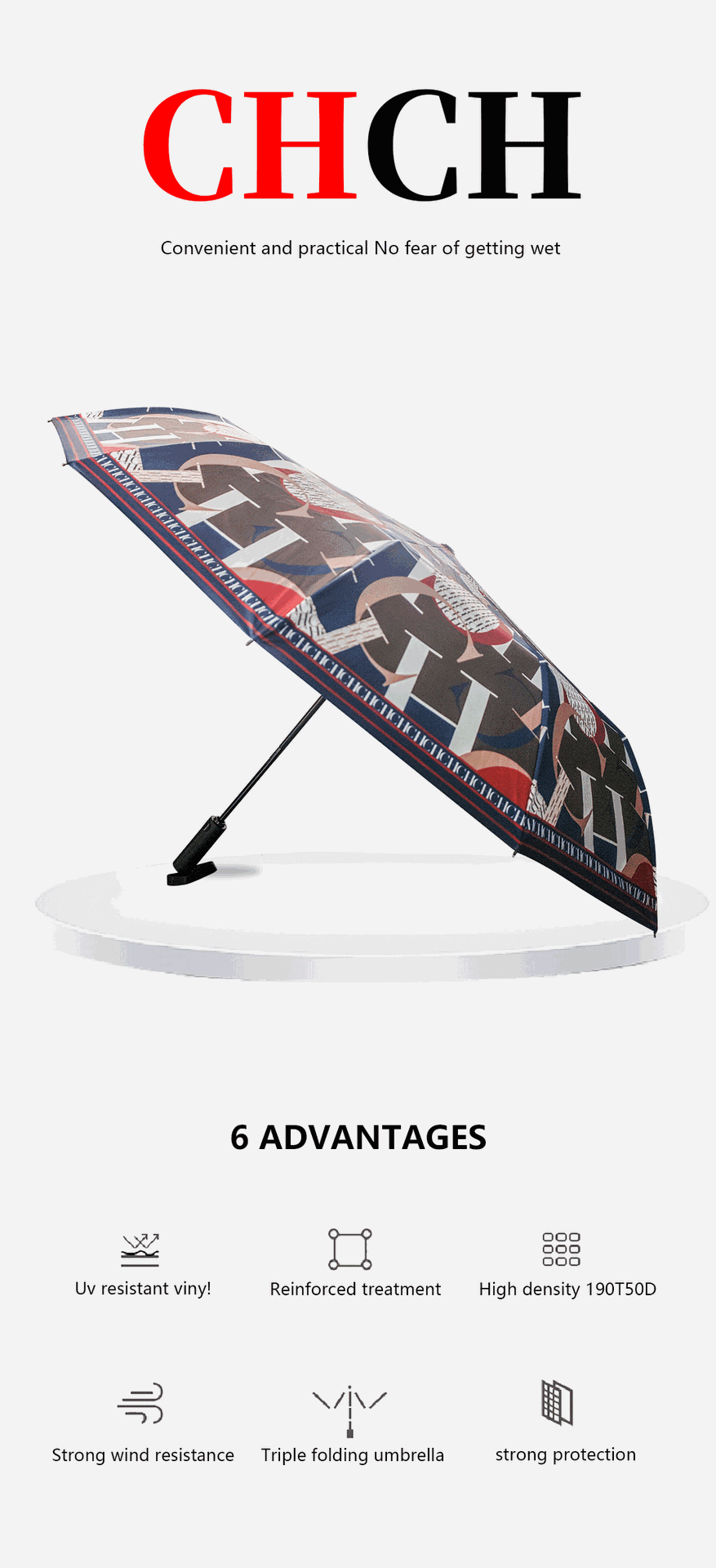 CHHC 트렌디 브랜드 인쇄 햇빛 검은 고무 완전 자동 접는 선 스크린 및 자외선 보호 및 비 보호 우산