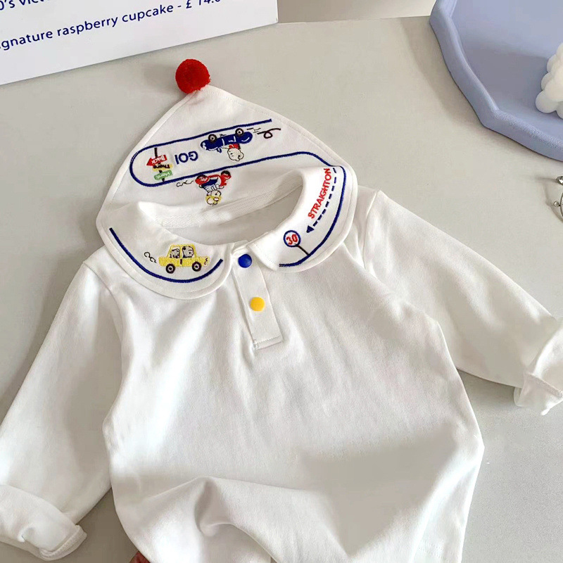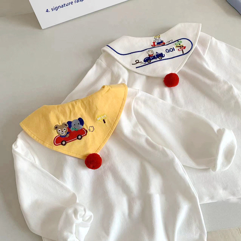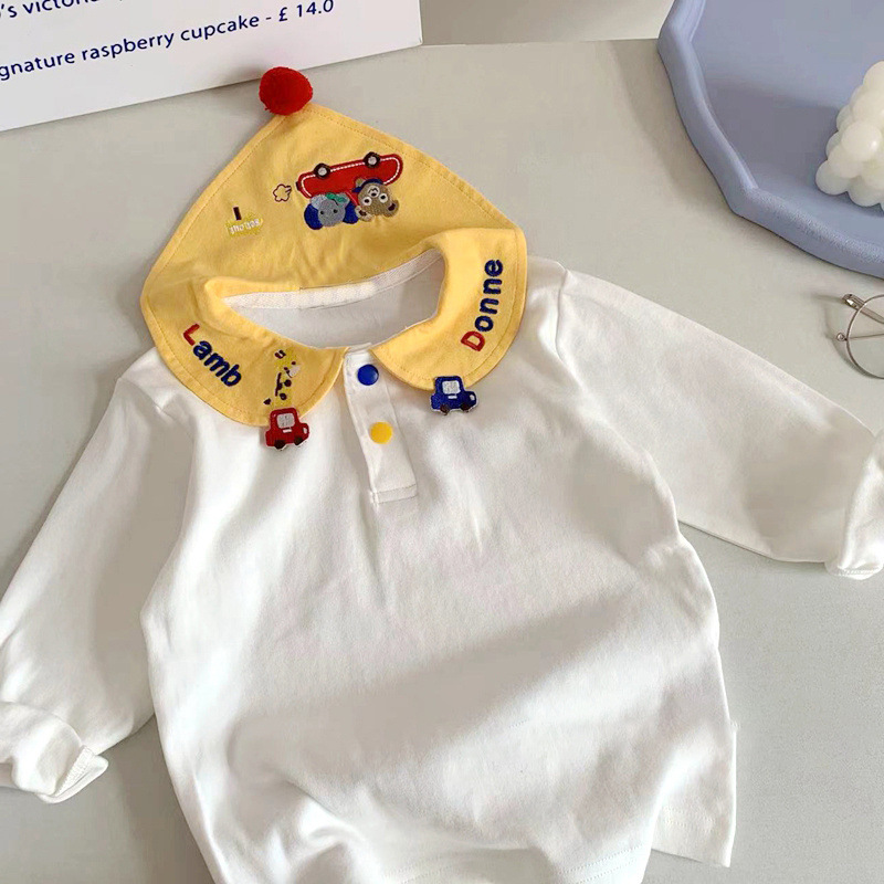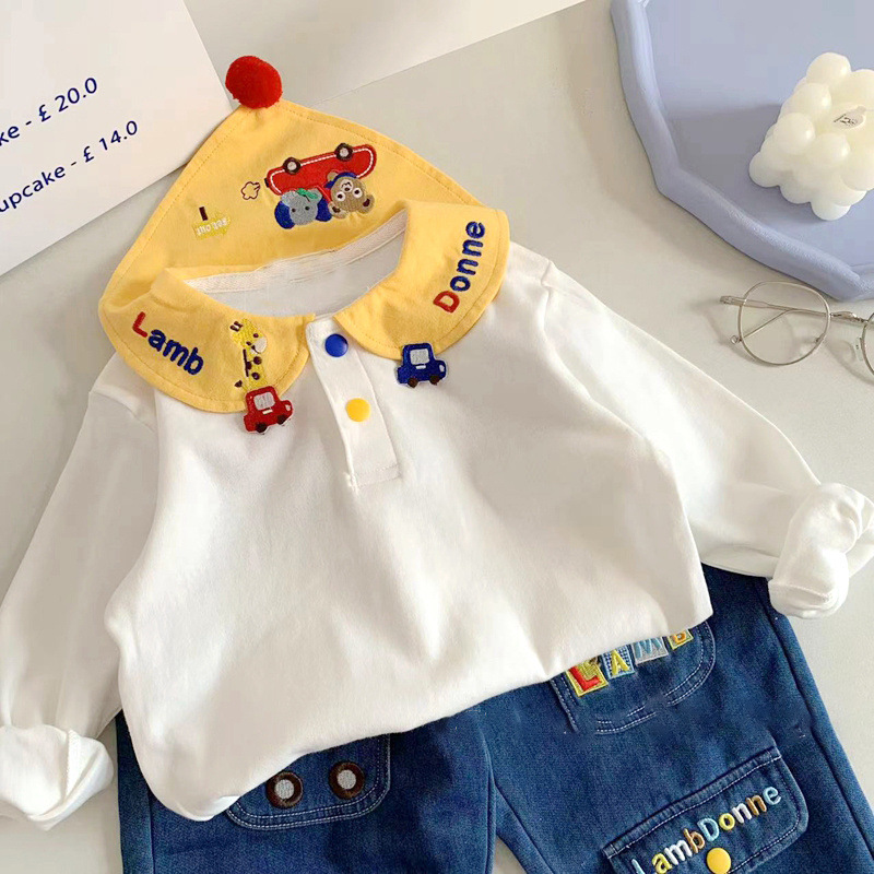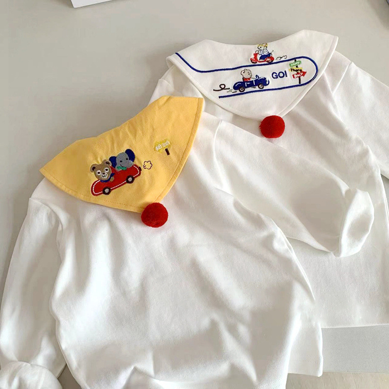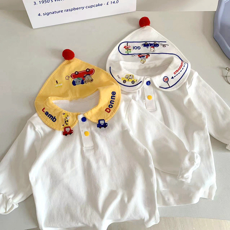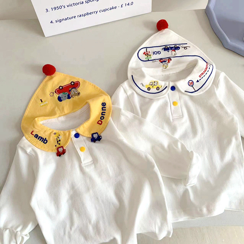 봄 신상 일본 스타일 남아 여아 카라 티셔츠, 아동용 베이비 패셔너블하고 귀여운 티셔츠, 면 상의, 아동복스토어 가기