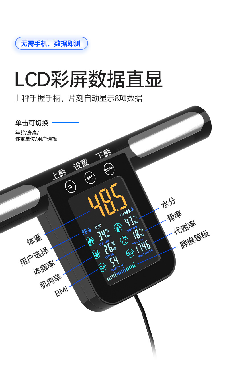 지혜 8 전극 지능형 체지방 규모 공장 대외 무역 국경 간 대규모 무게 전문 지방 측정 체지방 스케일 재고