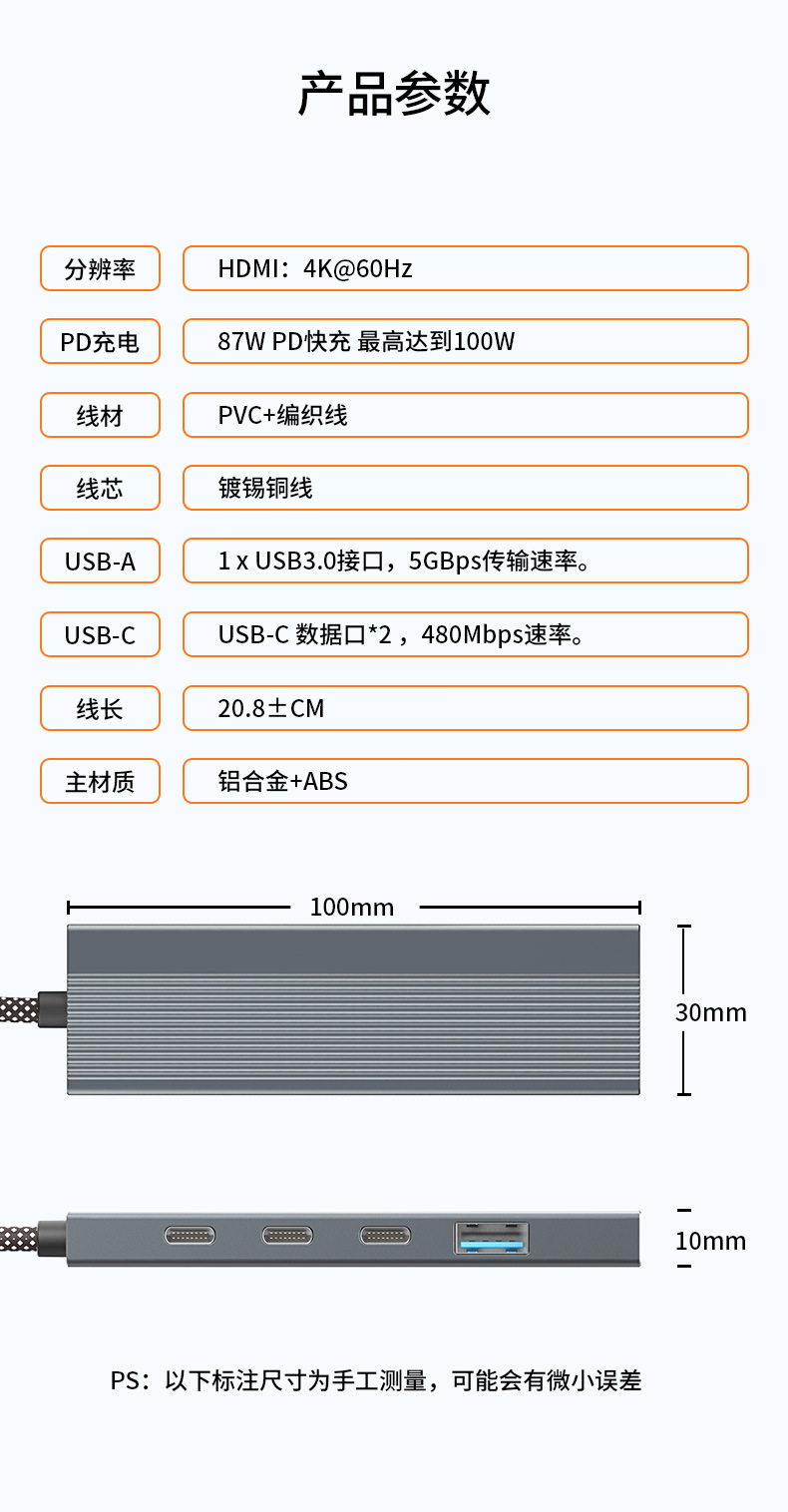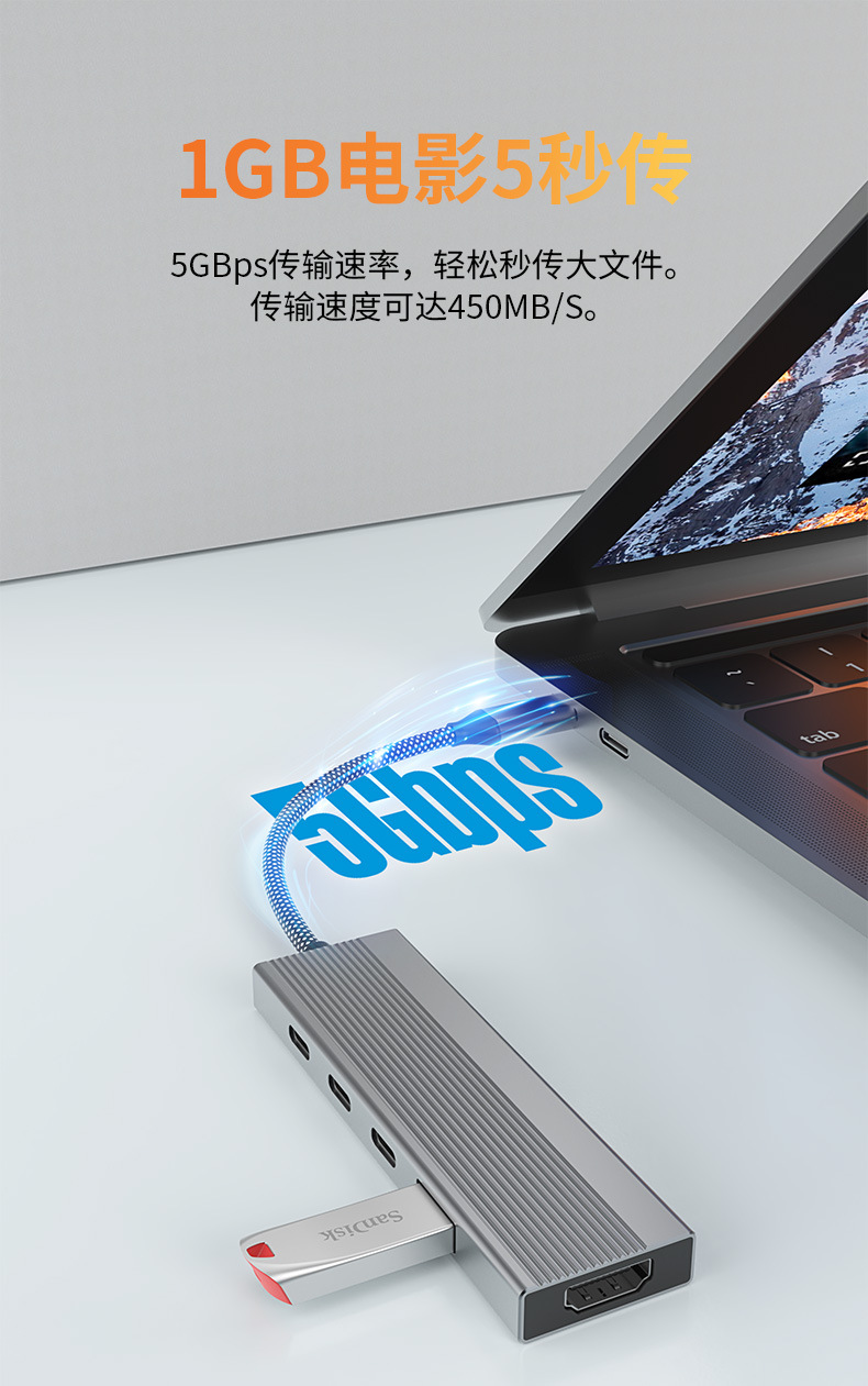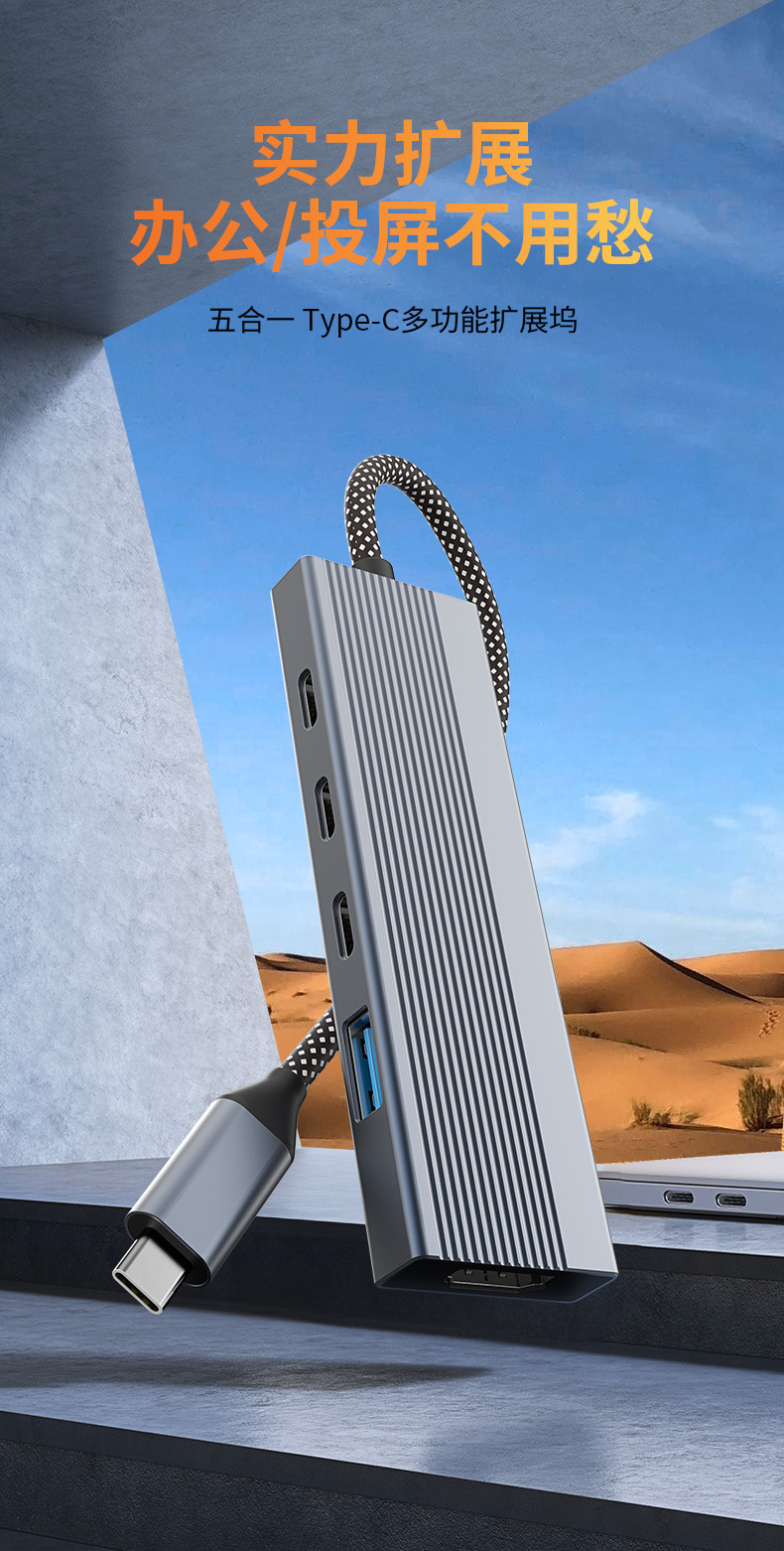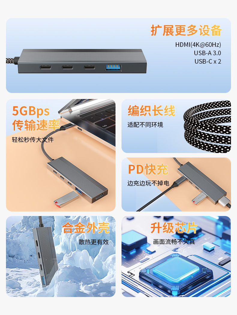 5-in-1 타입 C 확장 도크 USB 허브 다기능 허브 HDMI4K@60Hz USB3.0 확장 도크