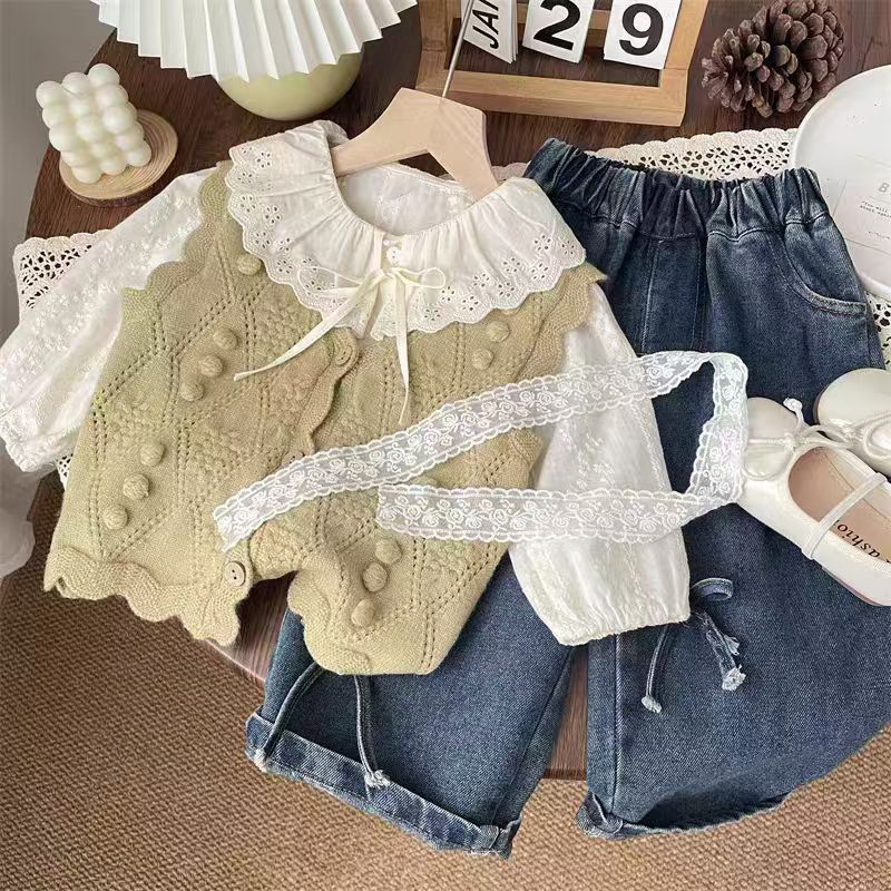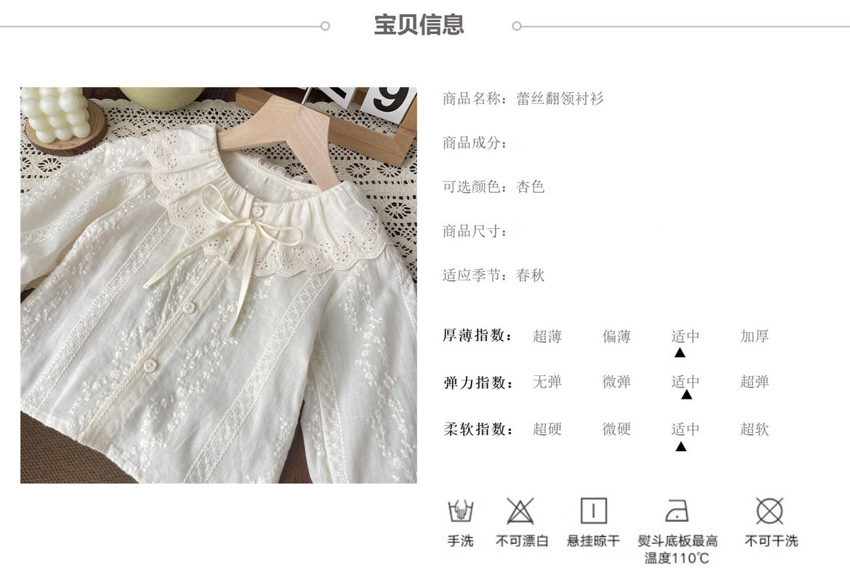 여아용 다용도 레이스 카라 셔츠, 봄 가을 신상품, 아동용 레이스 셔츠스토어 가기