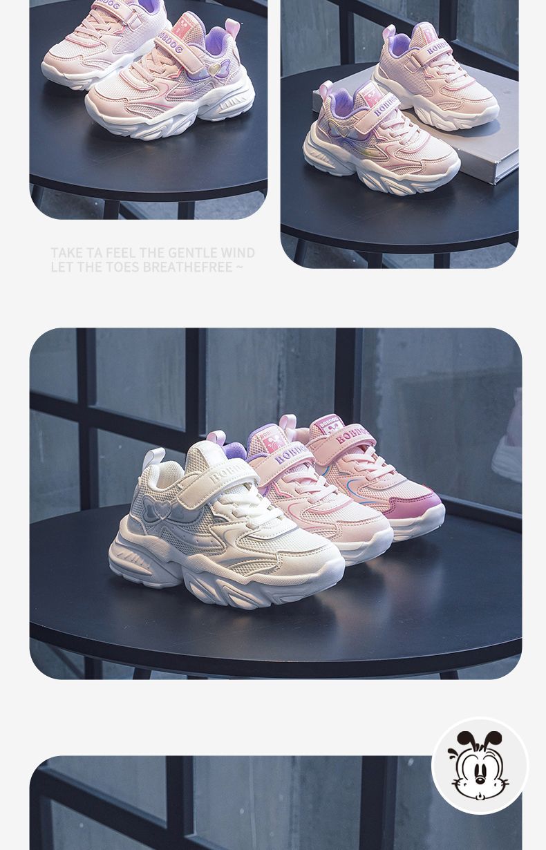 바부 콩 어린이 신발 2024 새로운 봄과 가을 두꺼운 밑창 어린이 운동화 공주 새로운 중국 아버지 소녀 신발스토어 가기