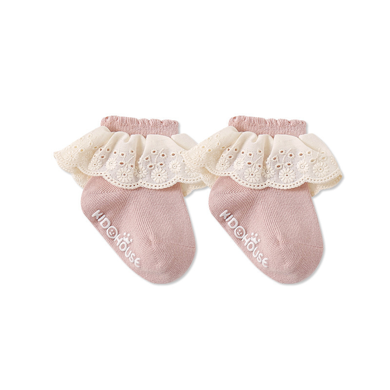 가을과 겨울 빗질면 아기 양말 레이스 공주 양말 소녀 댄스 양말 아기 뼈없는 미끄럼 방지 바닥 양말 짧은