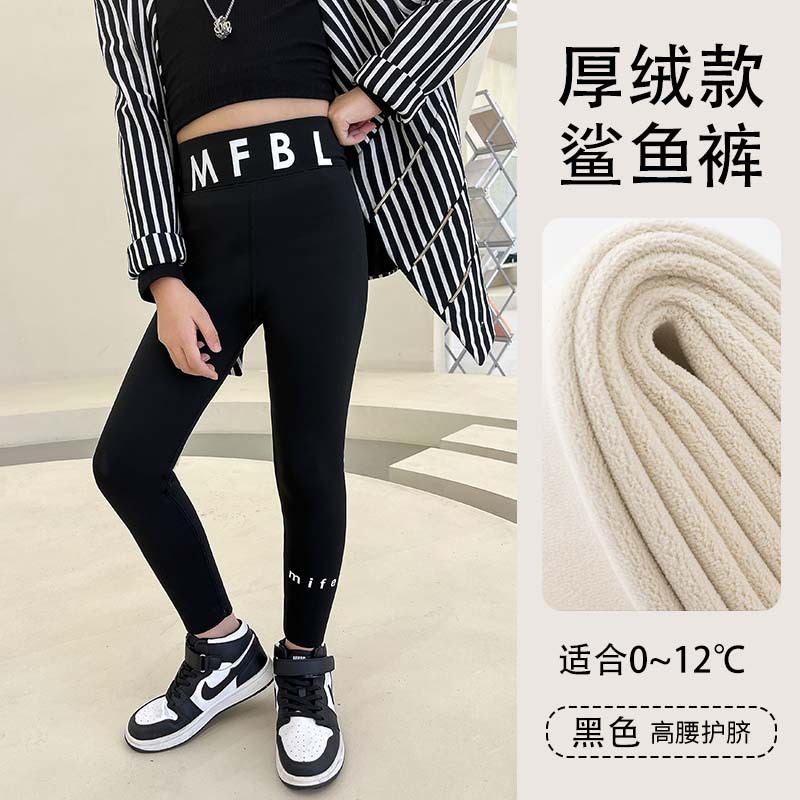 어린이 가을과 겨울 얇은 벨벳 외부 착용 레깅스 소녀 샌딩 상어 바지 높은 탄성 높은 허리 바비 바지