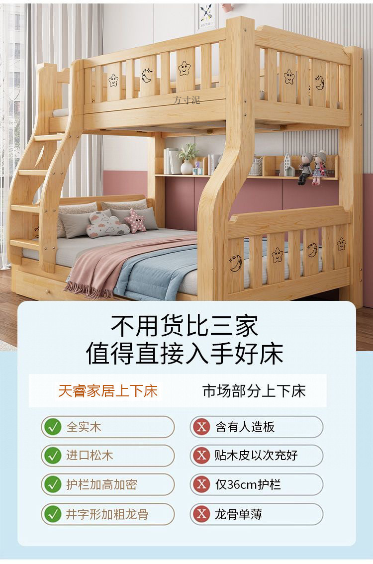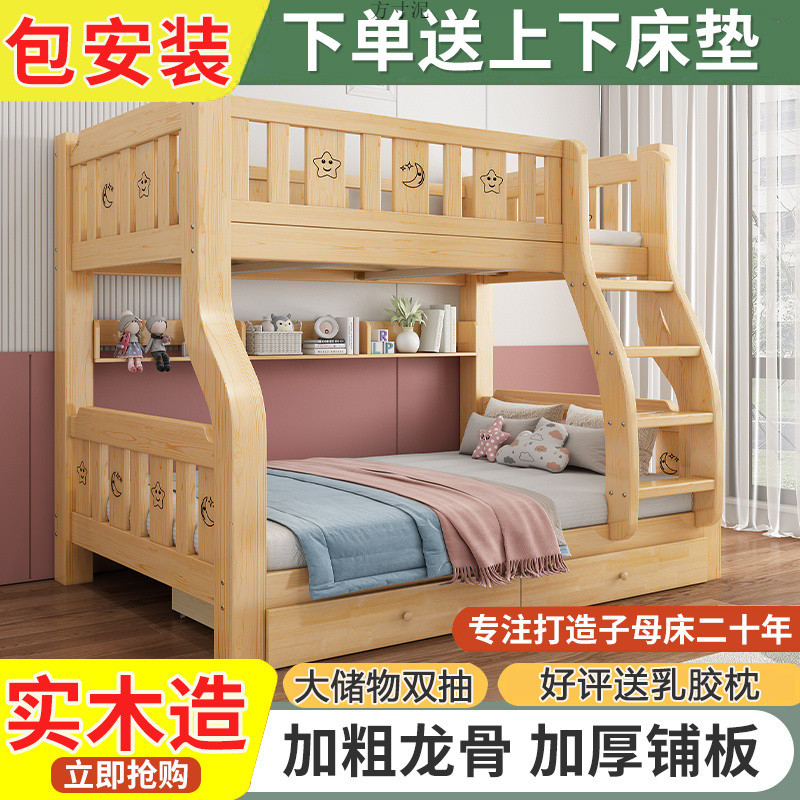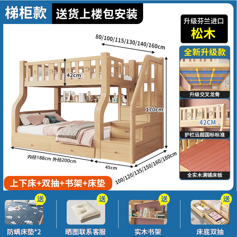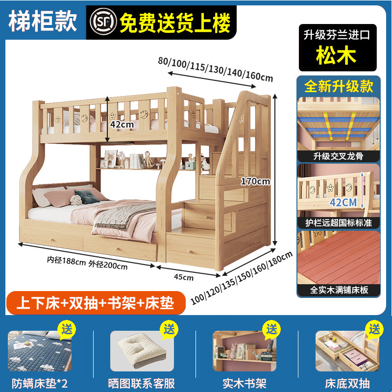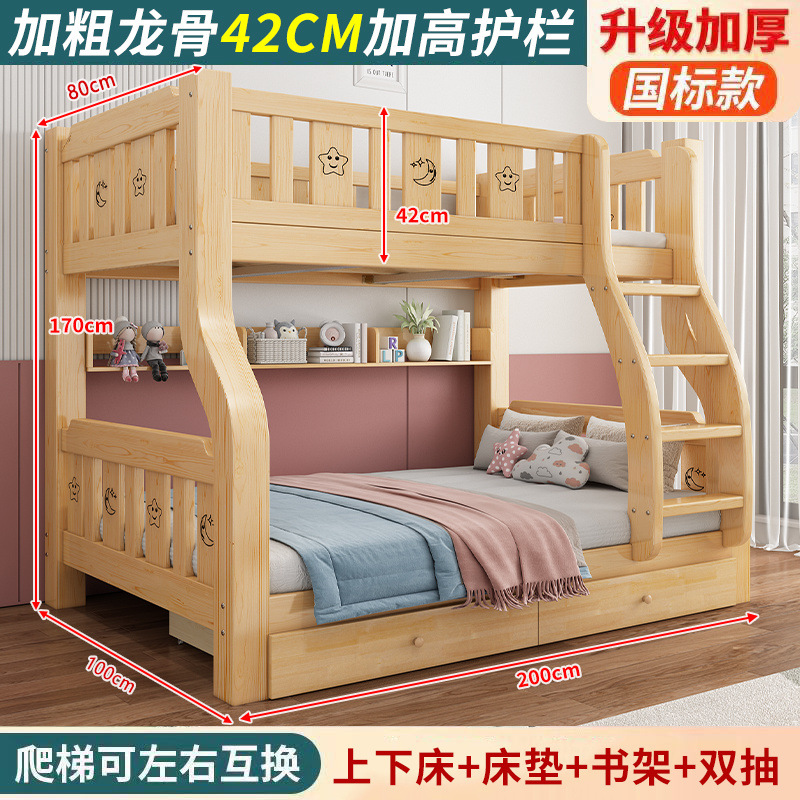 단단한 나무 상부 및 하부 침대 성인 상부 및 하부 이층 침대 어린이 침대 높고 낮은 침대 더블 침대 이층 공장 도매스토어 가기