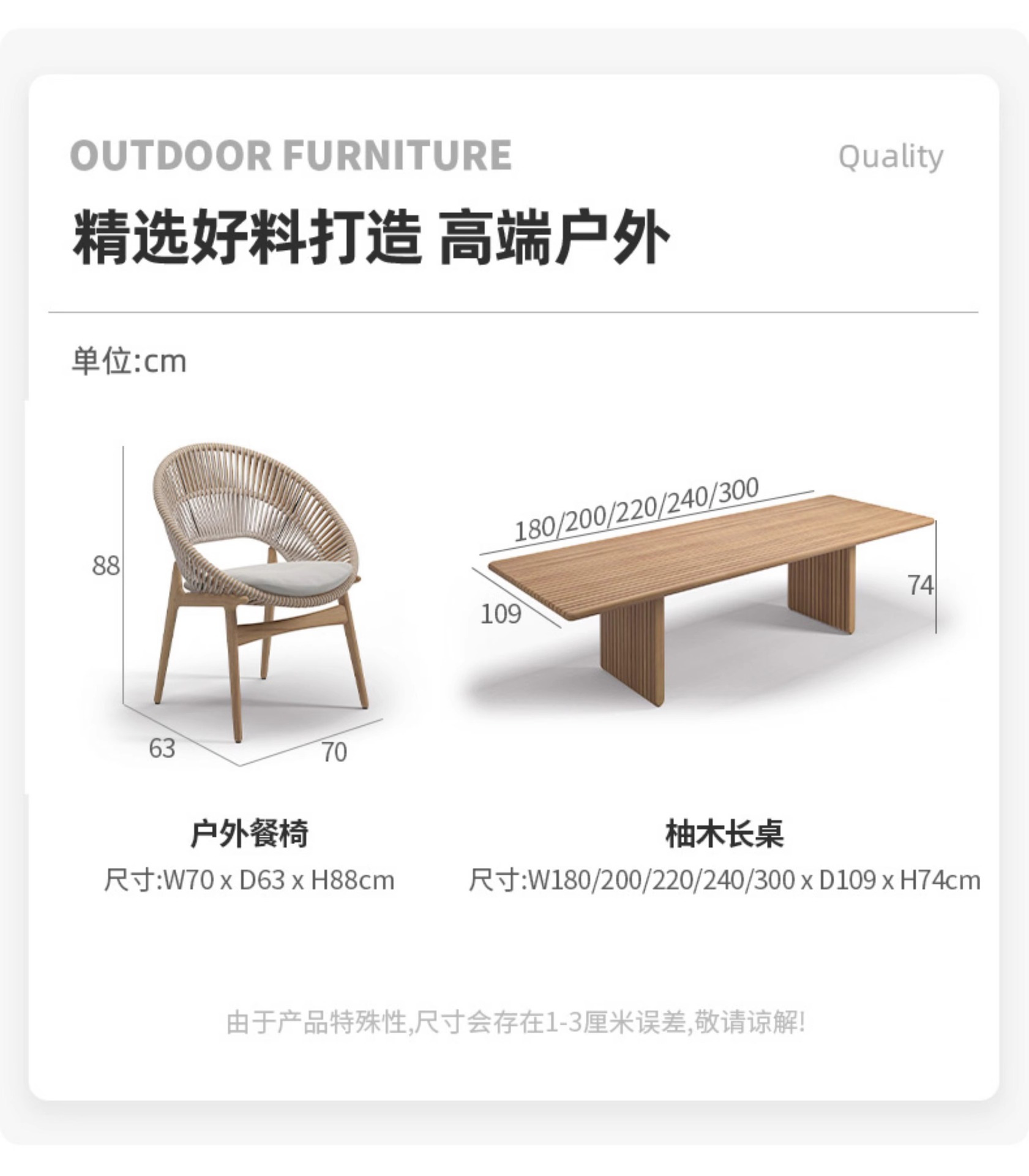 맞춤형 레저 야외 테이블과 의자, 안뜰 테라스, 야외 등나무 식탁과 의자, 빌라 방수 티크 목재 야외 가구