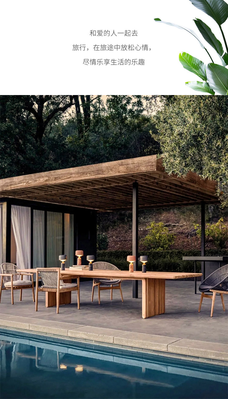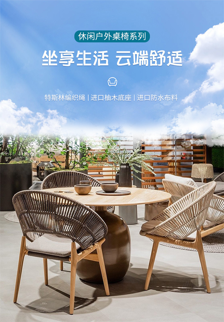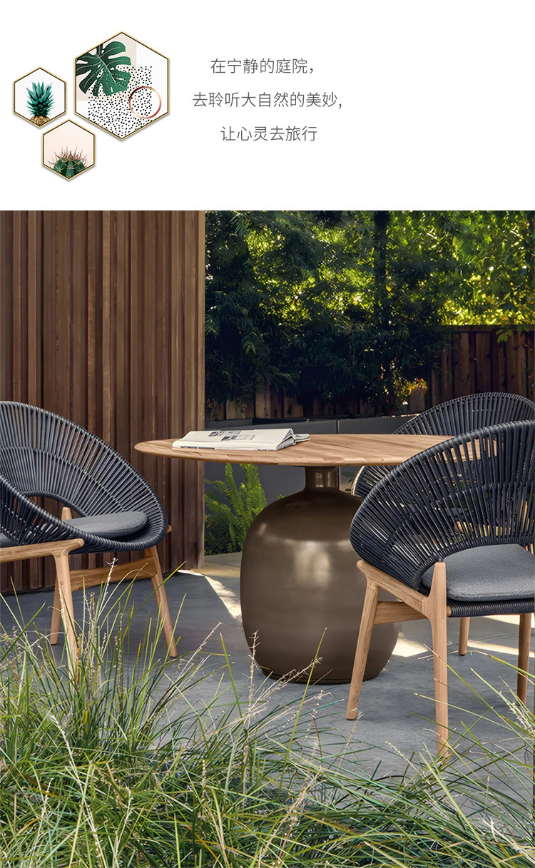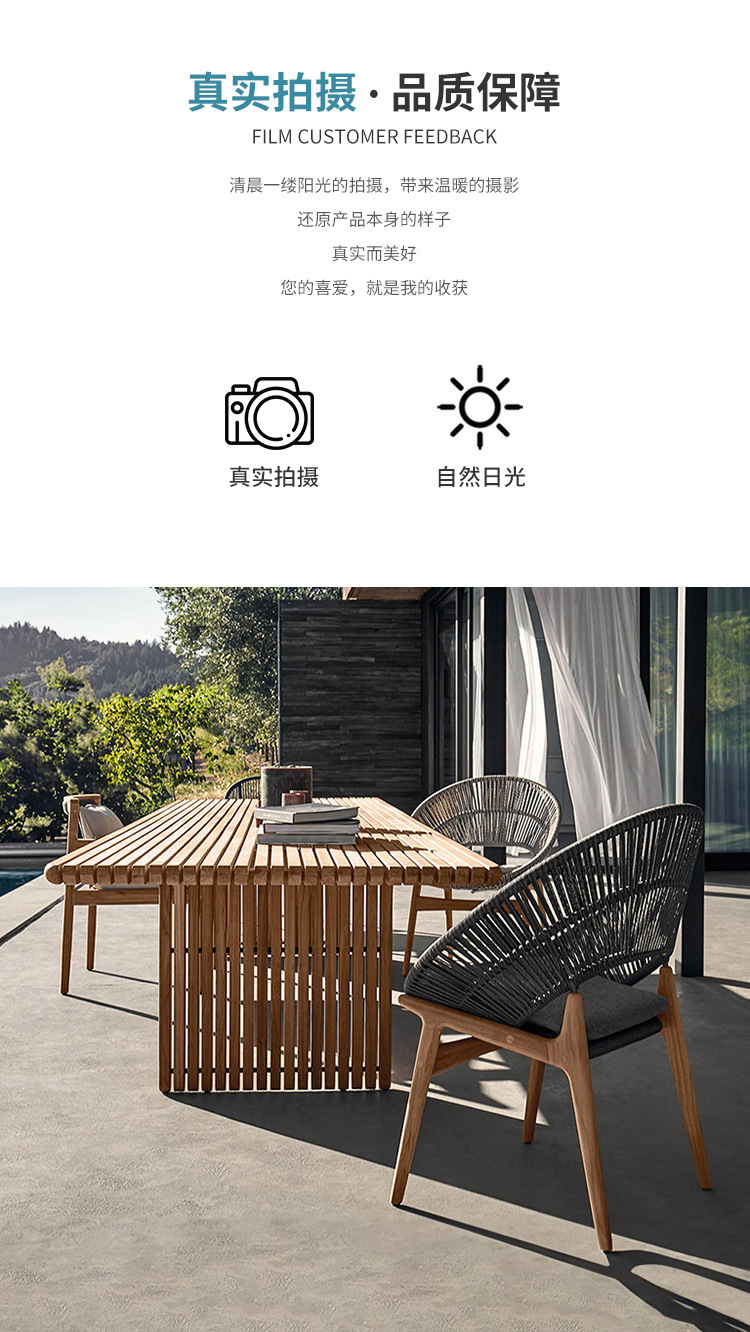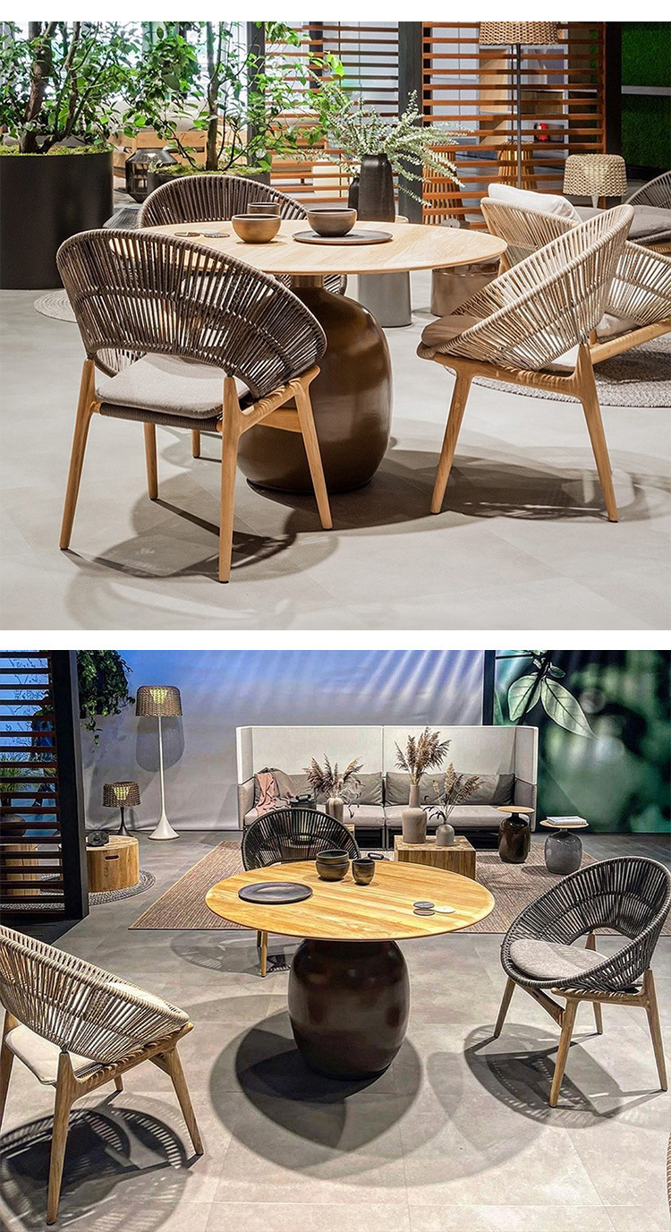 맞춤형 레저 야외 테이블과 의자, 안뜰 테라스, 야외 등나무 식탁과 의자, 빌라 방수 티크 목재 야외 가구스토어 가기