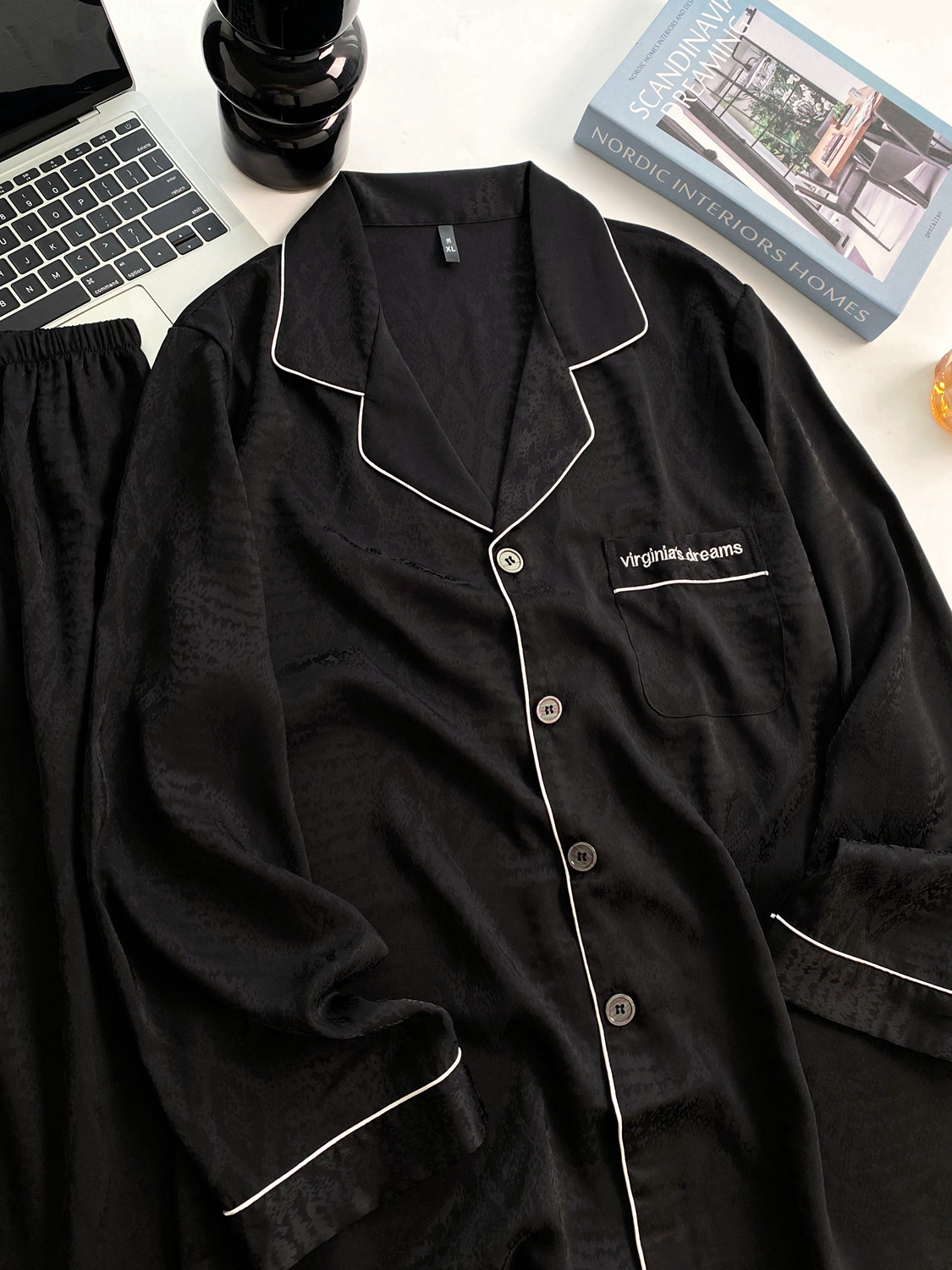 남자 잠옷 가을 긴팔 아이스 실크 카디건 세트 편지 사틴 자카드 하이 엔드 리틀 레드 라이딩 북 같은 스타일 홈 의류스토어 가기