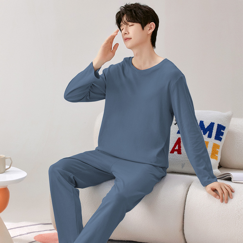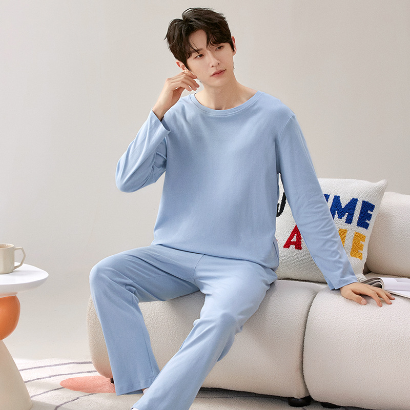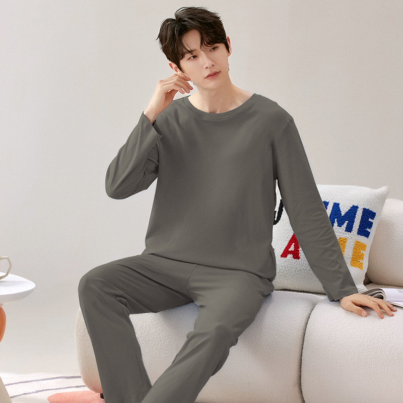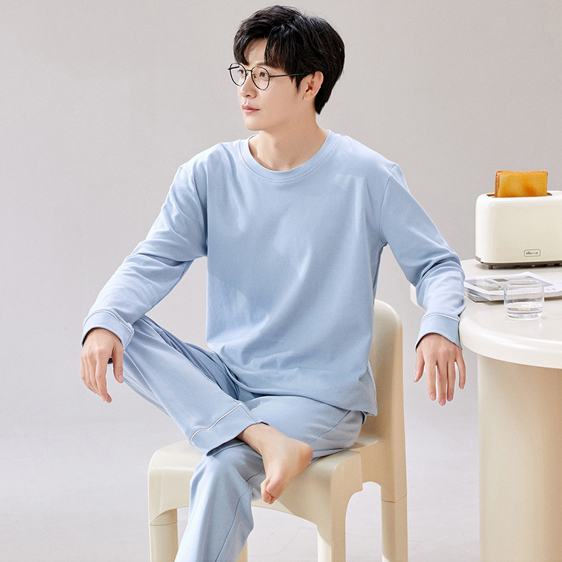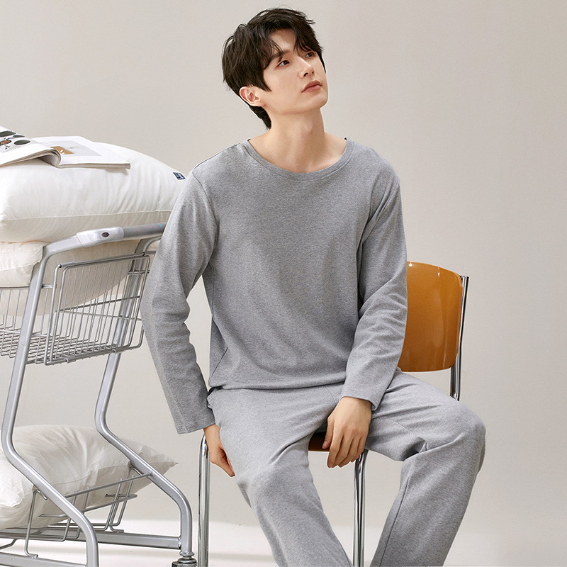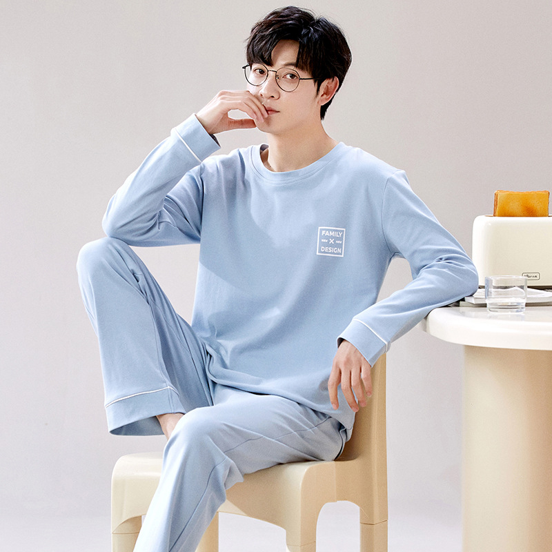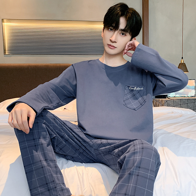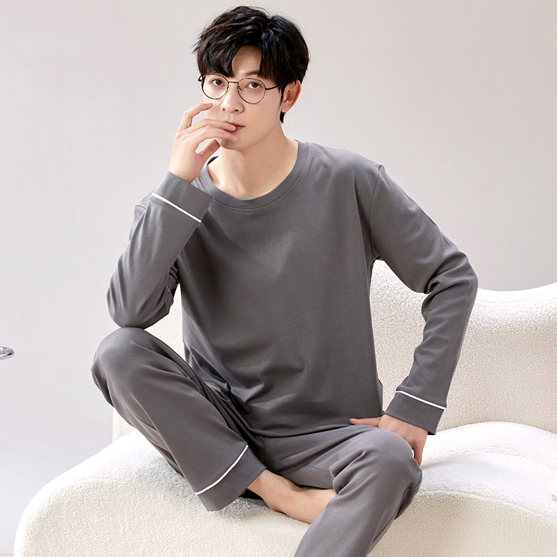 긴 소매 면 잠옷 가을 남자 세트 홈 옷 캐주얼 라운드 넥 청소년 플러스 사이즈 편안한 겨울 잠옷