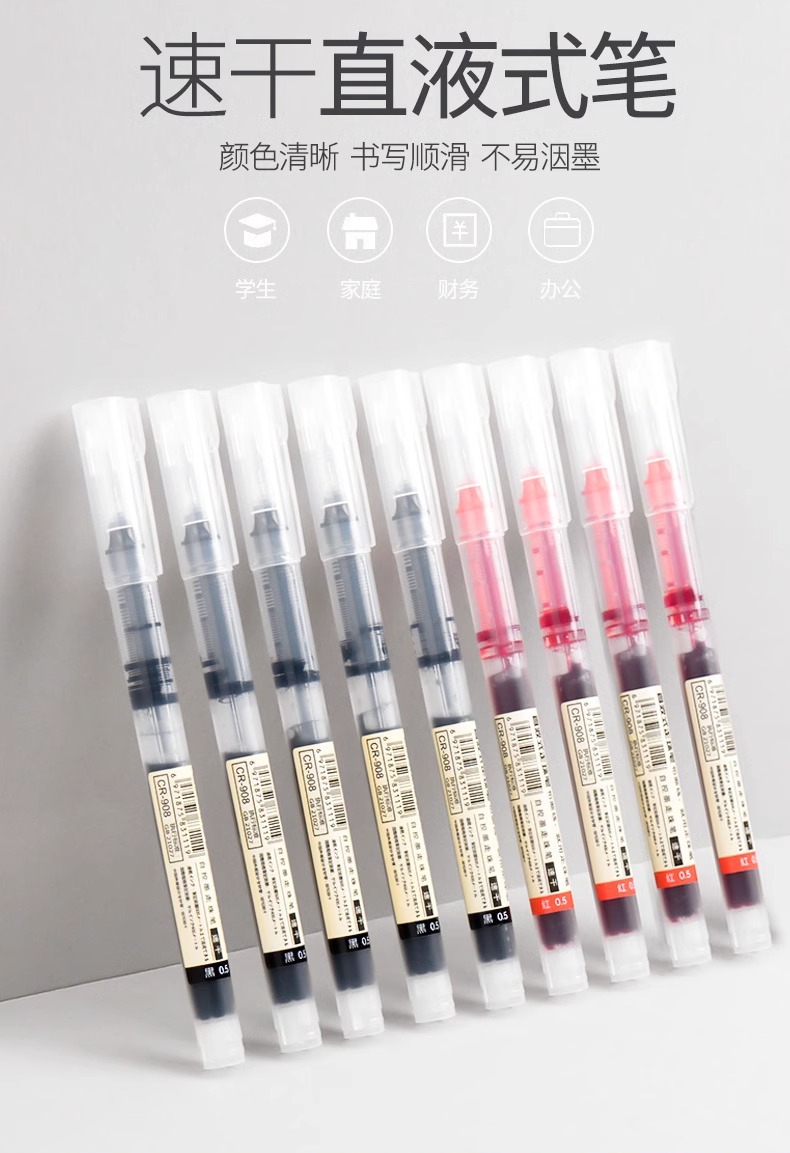 직접 액체 구슬 젤 펜 0.5 바늘 펜 탄소 펜 학생 시험 서명 블랙 펜 창조적 인 빠른 건조