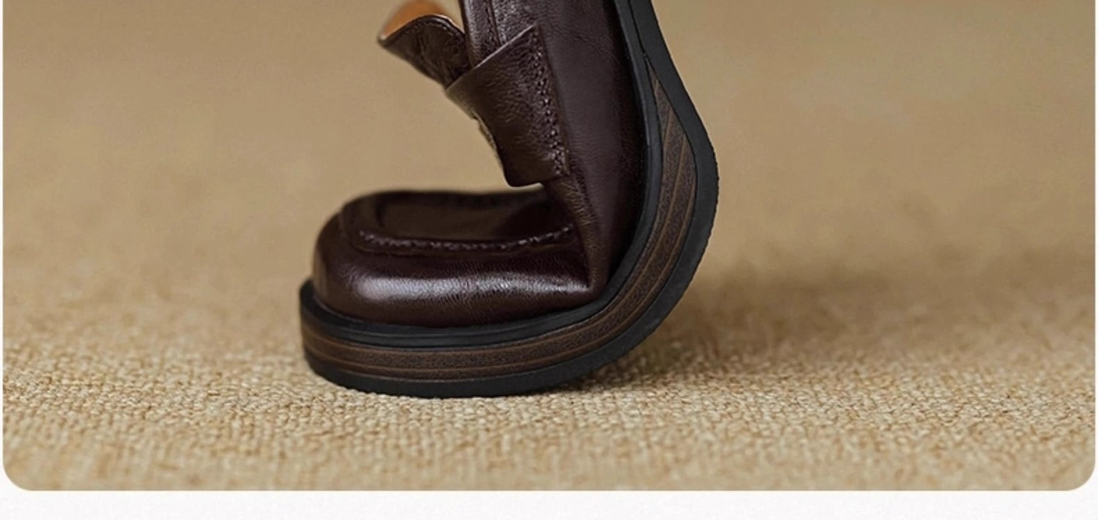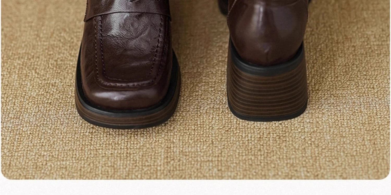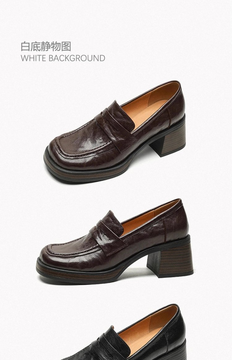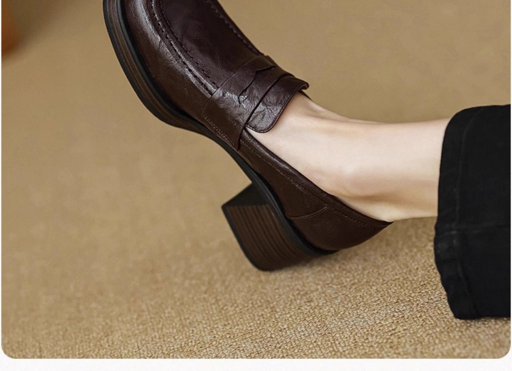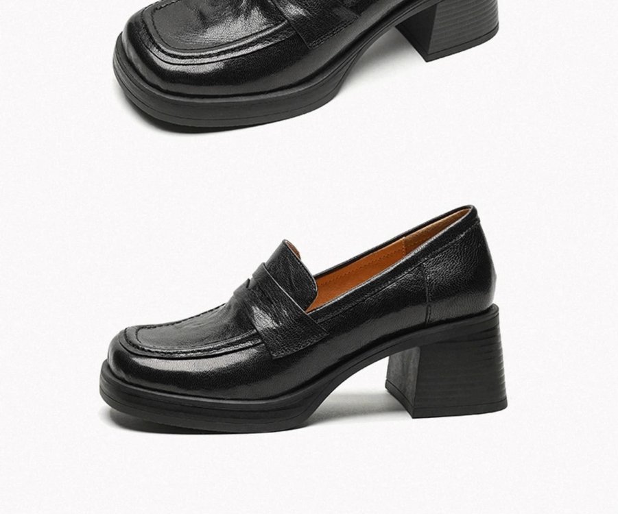 2025년 초봄 신상품 천연가죽 두꺼운 굽 스퀘어토 두꺼운 밑창 슬립온 로퍼 레트로 하이힐 여성용 가죽 슈즈스토어 가기