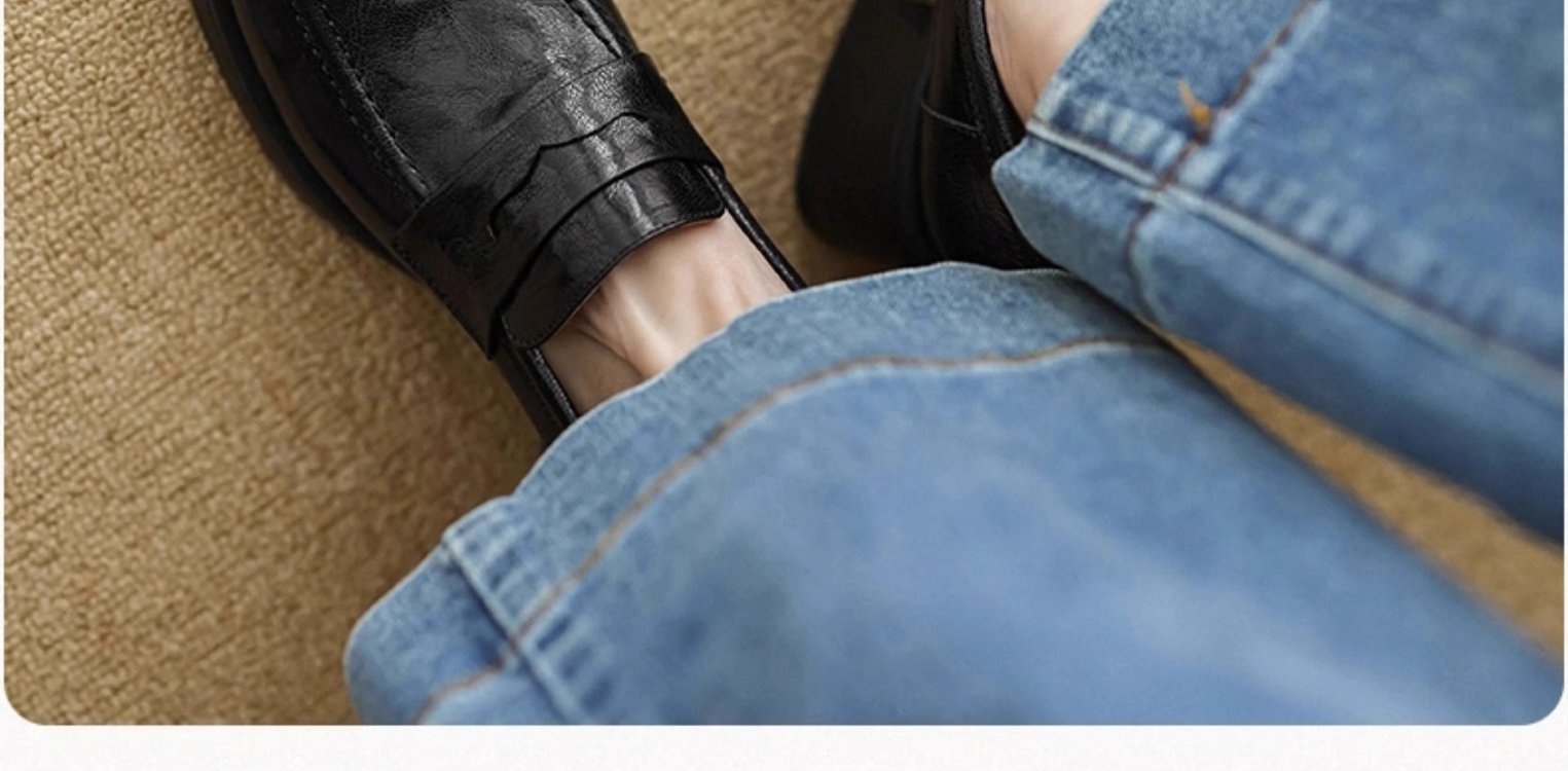 2025년 초봄 신상품 천연가죽 두꺼운 굽 스퀘어토 두꺼운 밑창 슬립온 로퍼 레트로 하이힐 여성용 가죽 슈즈