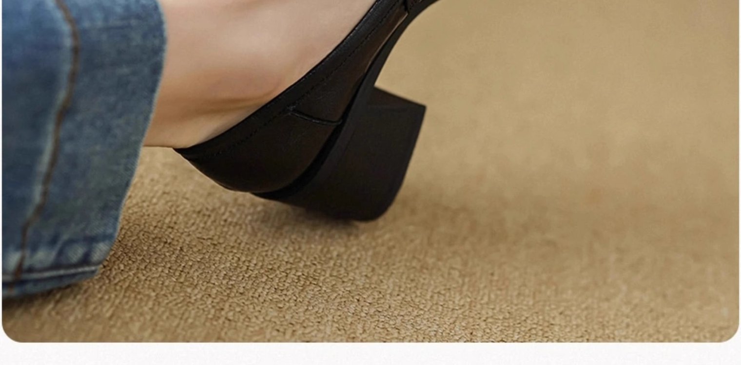 2024早春新款真皮粗跟方头厚底一脚蹬乐福鞋复古高跟小皮鞋单鞋女