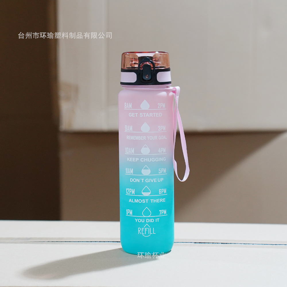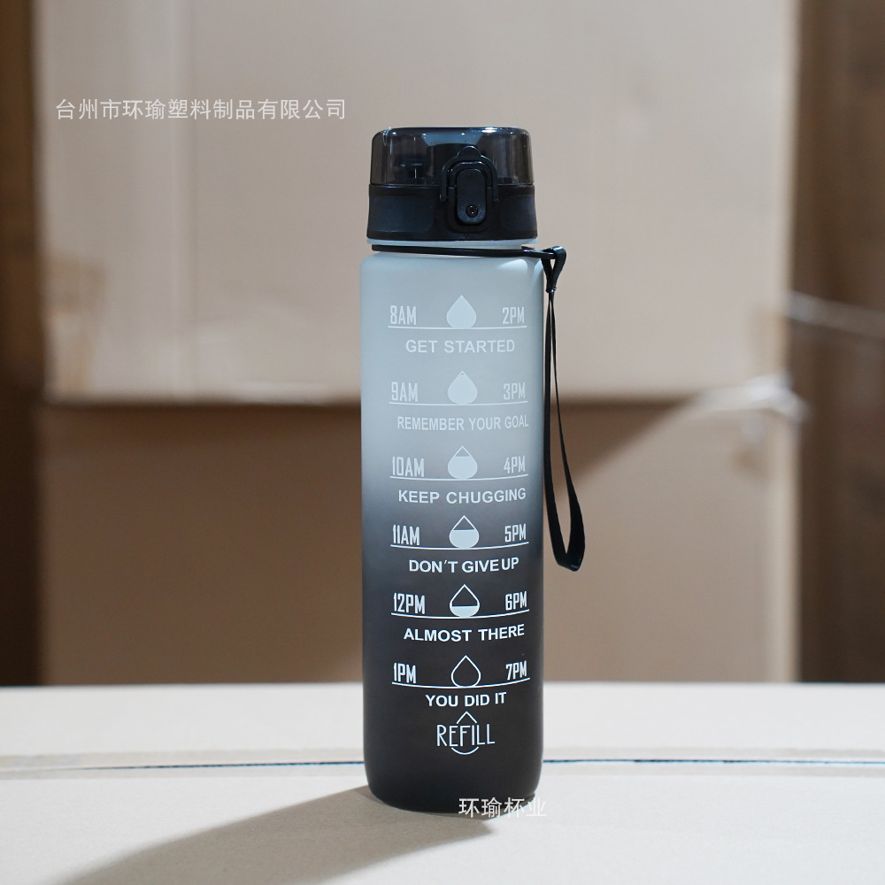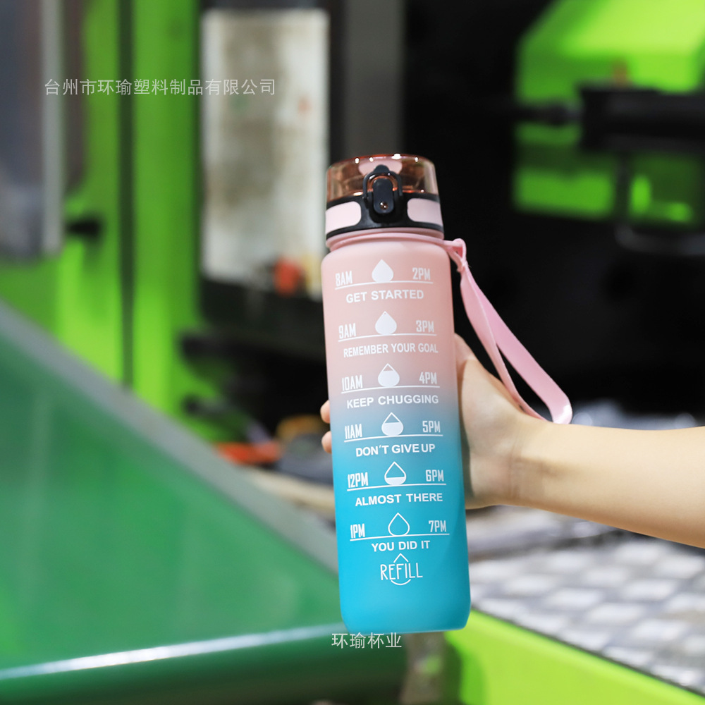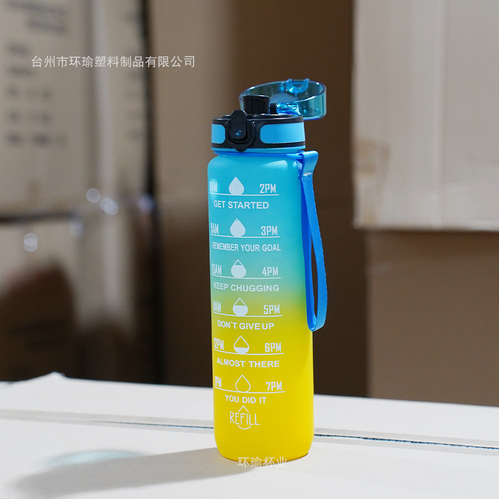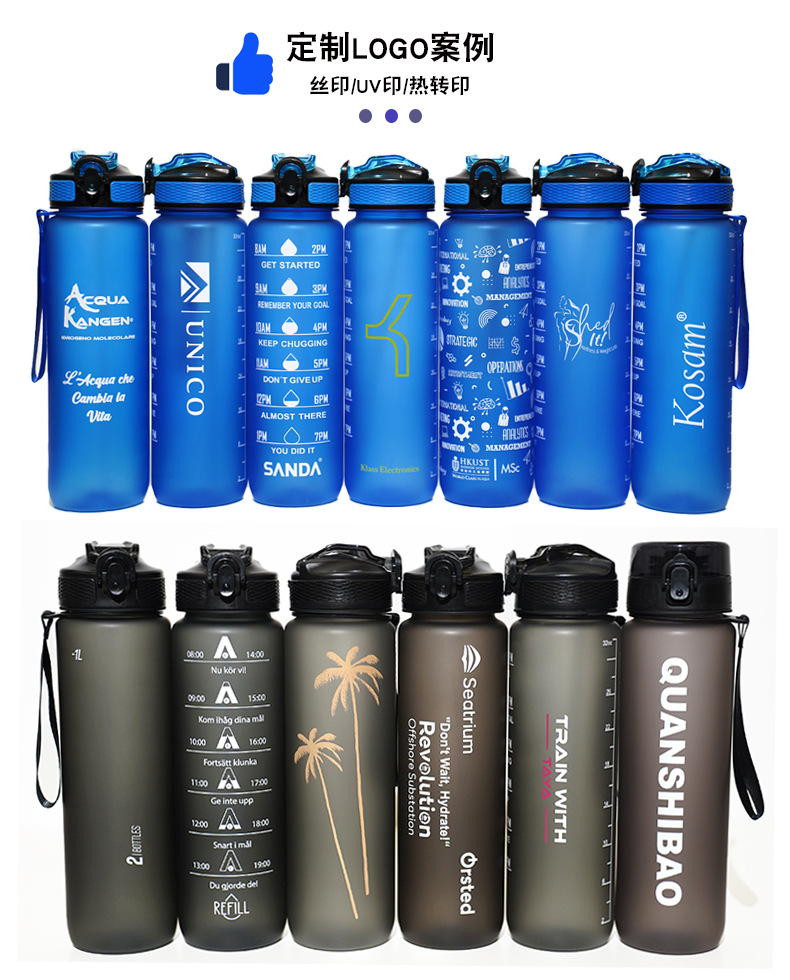 아마존 스포츠 워터 컵 1L 대용량 플라스틱 컵 누출 방지 휴대용 스페이스 컵 스케일 야외 음주 컵