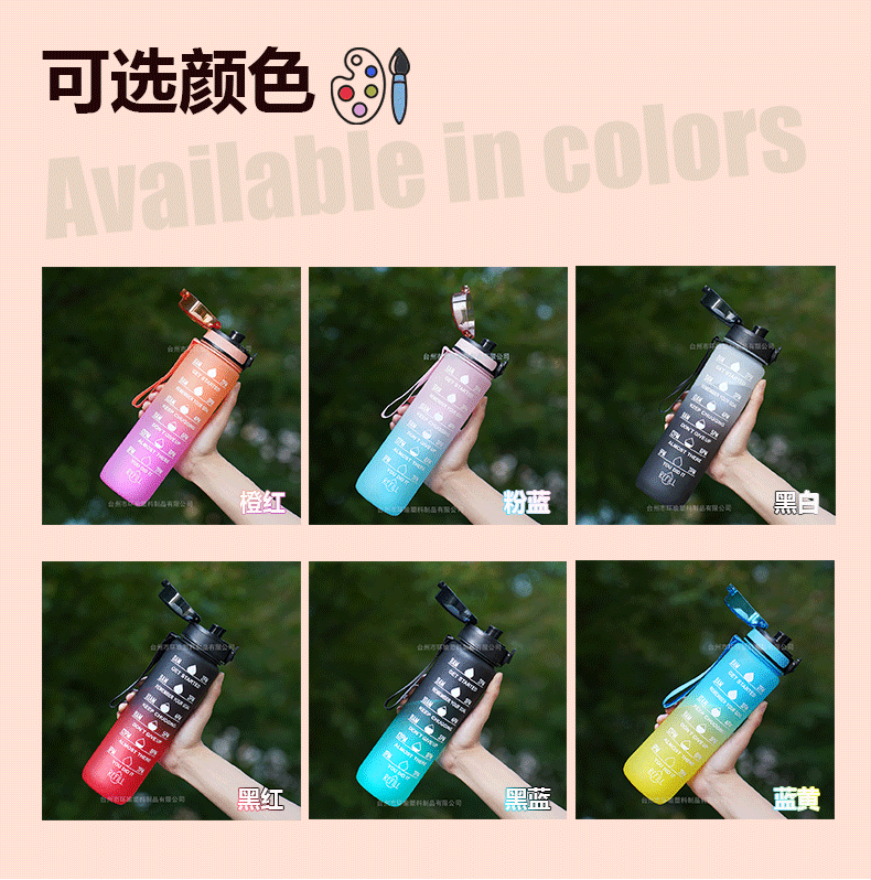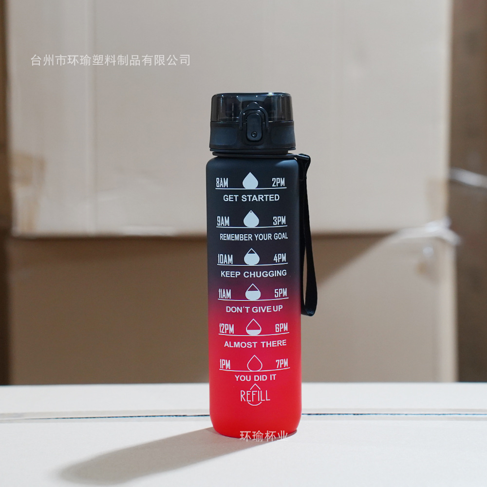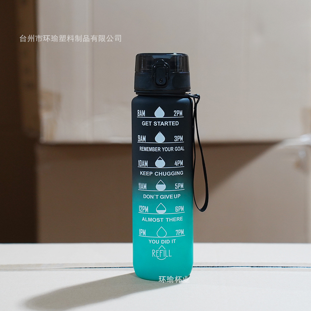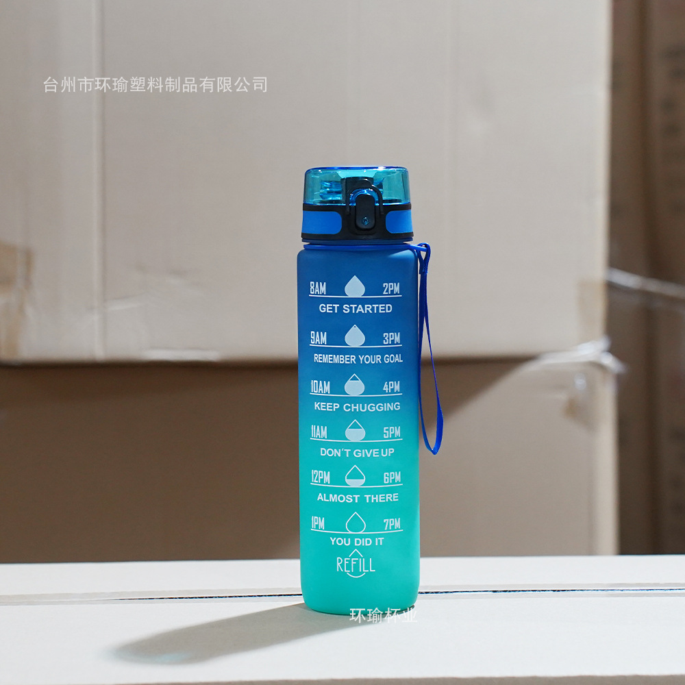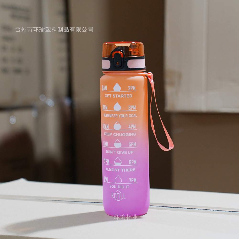 아마존 스포츠 워터 컵 1L 대용량 플라스틱 컵 누출 방지 휴대용 스페이스 컵 스케일 야외 음주 컵