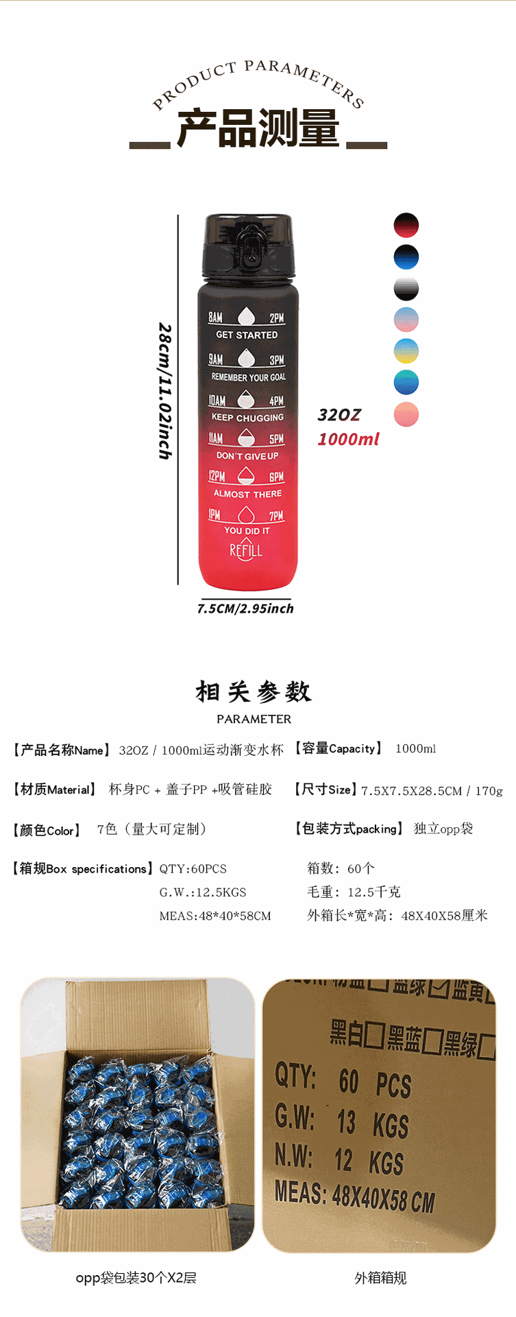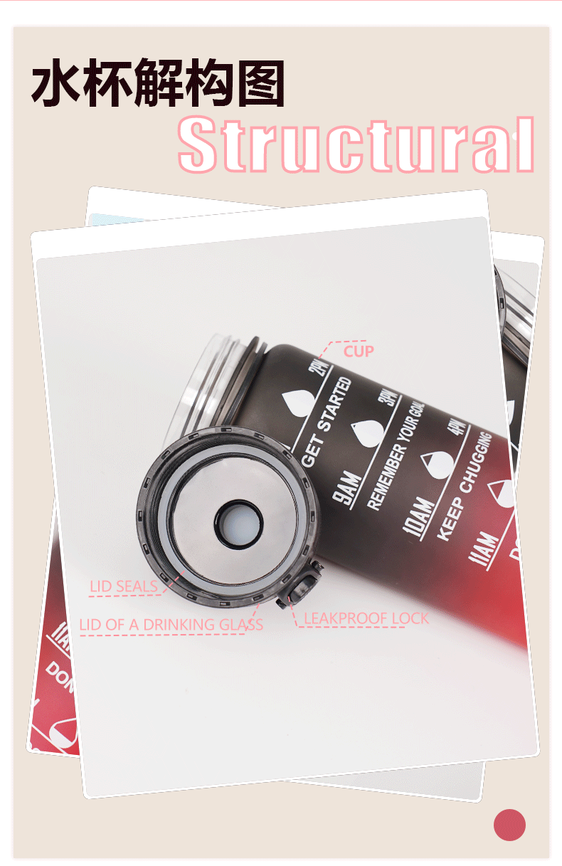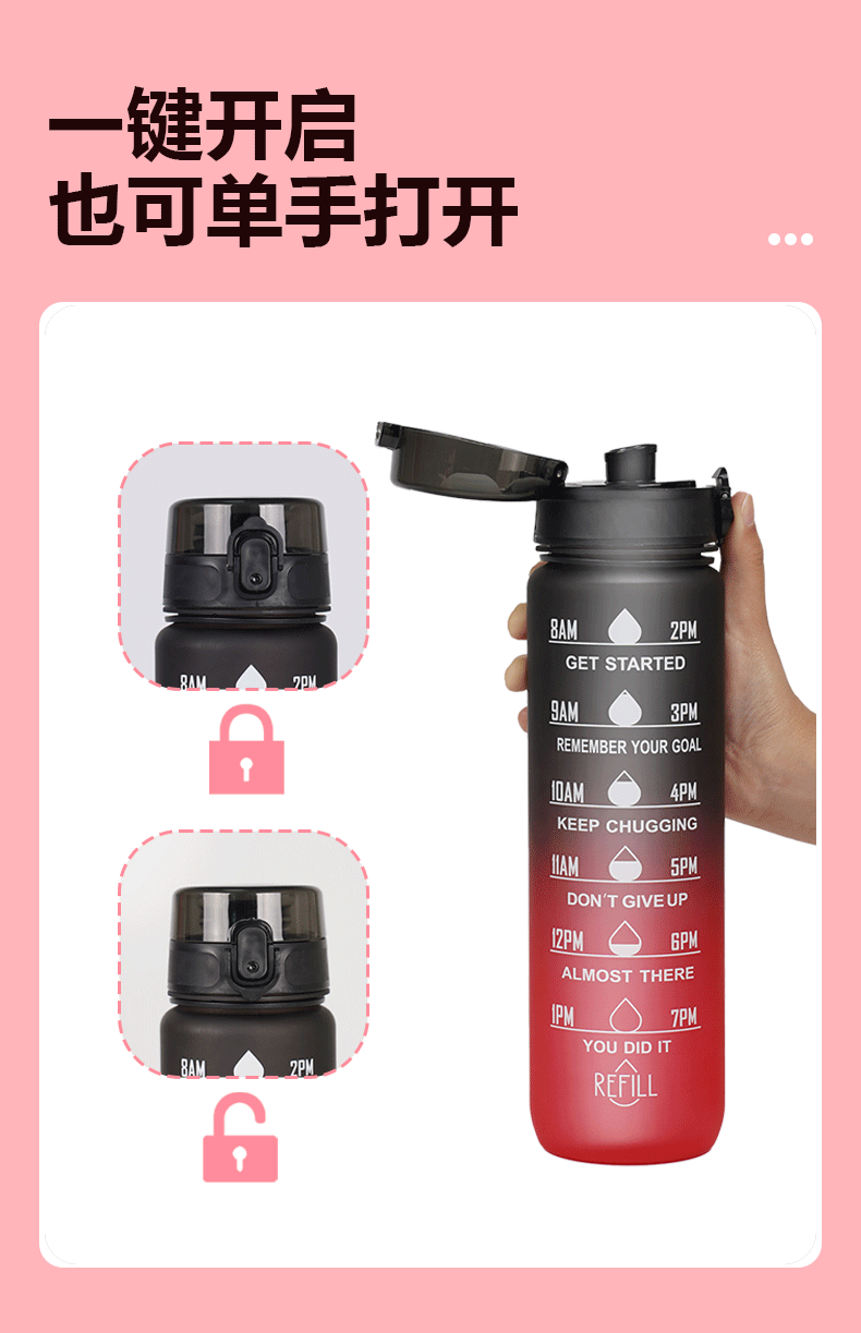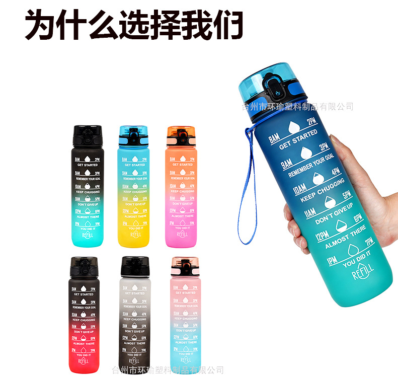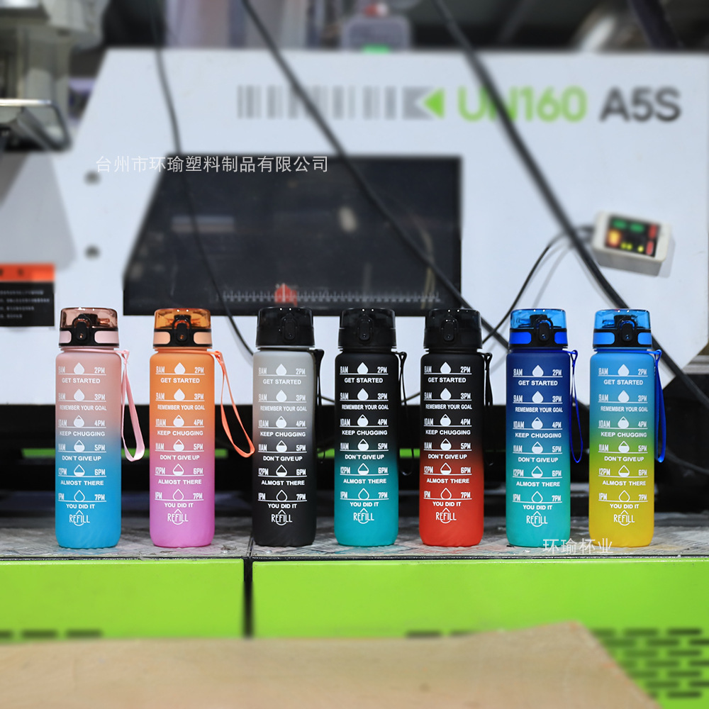 아마존 스포츠 워터 컵 1L 대용량 플라스틱 컵 누출 방지 휴대용 스페이스 컵 스케일 야외 음주 컵