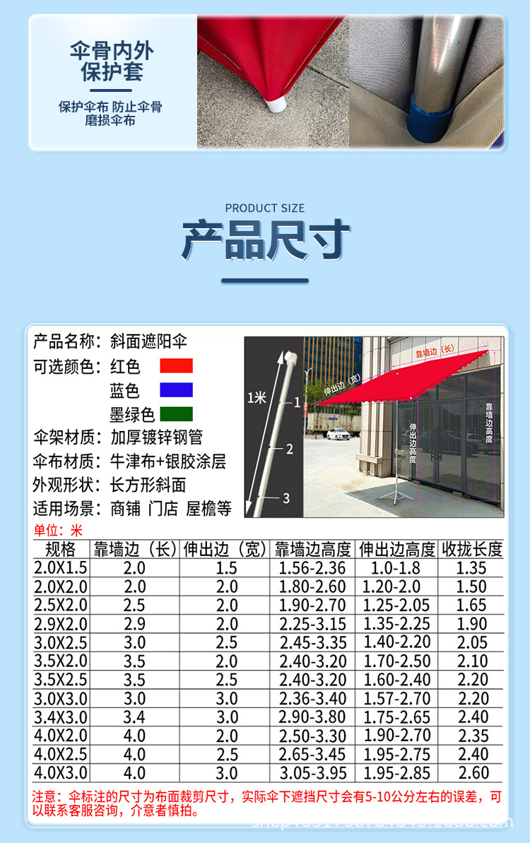 • 사선우산 3.5X 2.5m 두꺼운 6갈비 [중형]
