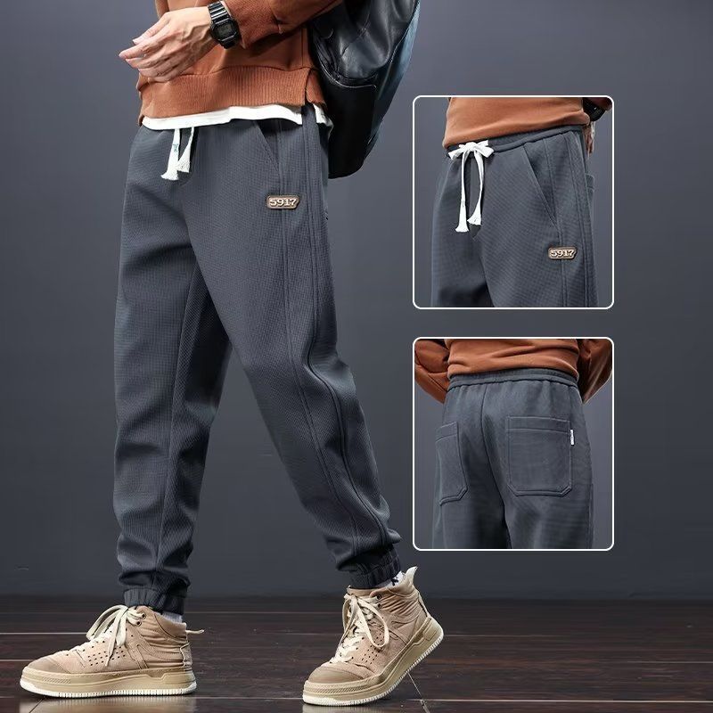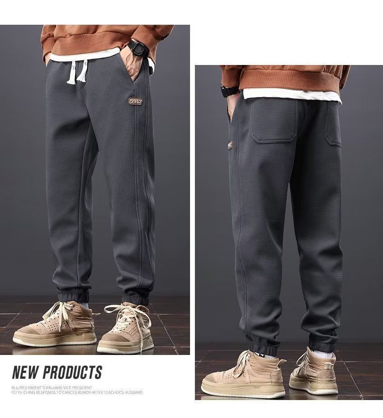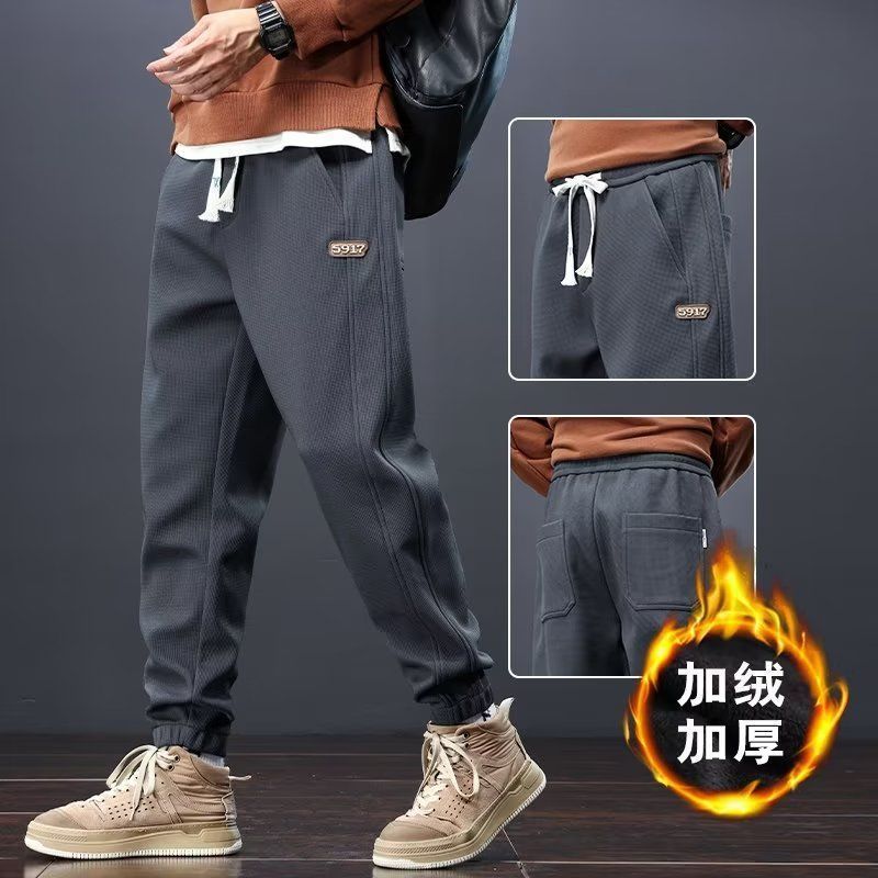 남성 바지 가을, 겨울 일본식 느슨한 스포츠 졸라 매는 끈 스웨트 팬츠 플러스 벨벳 두꺼운 따뜻한 캐주얼 긴 바지
