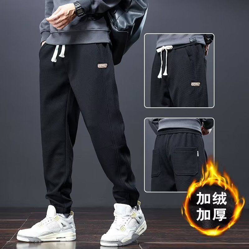 남성 바지 가을, 겨울 일본식 느슨한 스포츠 졸라 매는 끈 스웨트 팬츠 플러스 벨벳 두꺼운 따뜻한 캐주얼 긴 바지스토어 가기