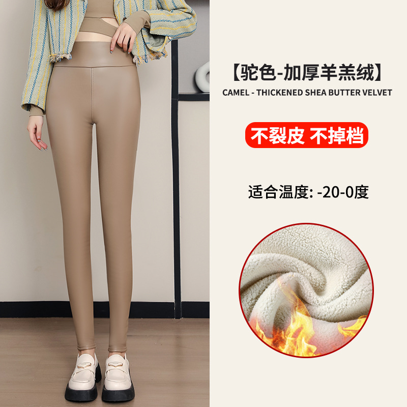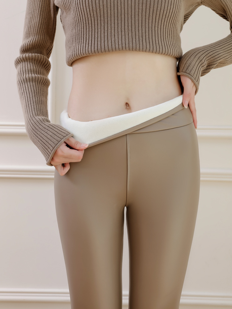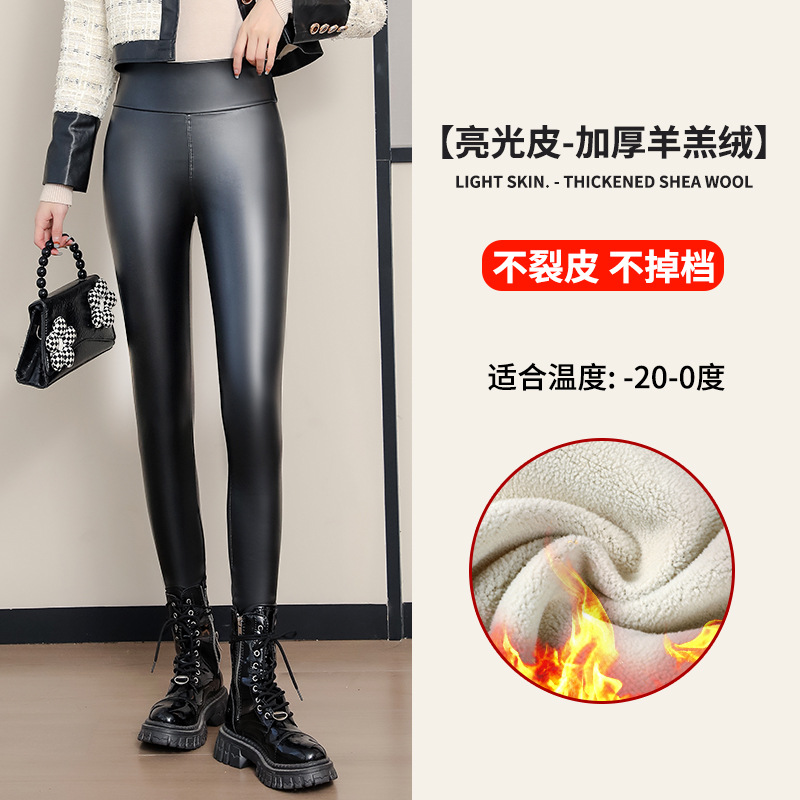 대외 무역 국경 간 양가죽 바지 여성용 외부 착용 기모 두꺼운 레깅스 높은 허리 슬림 타이트 PU 가죽 따뜻한 바지
