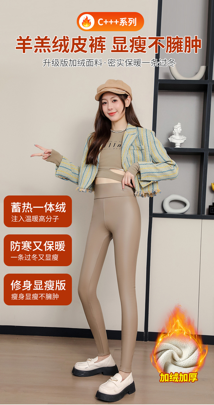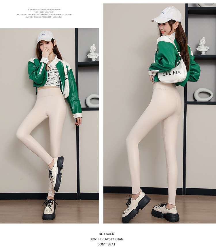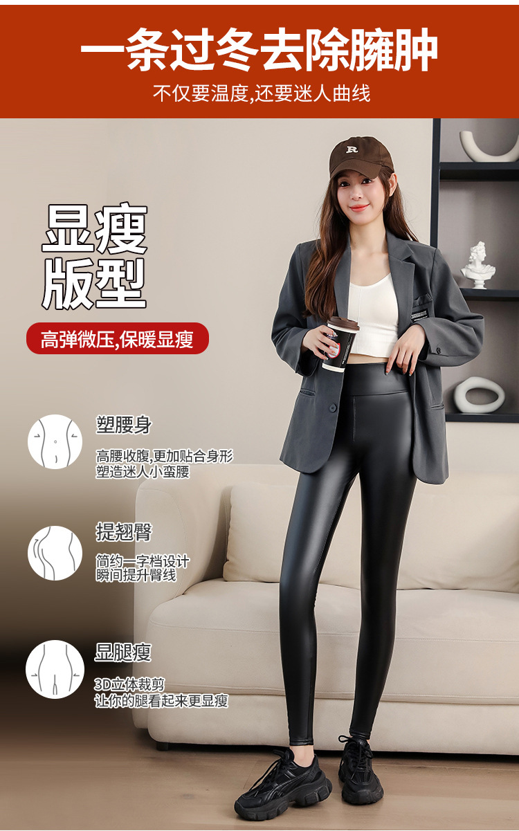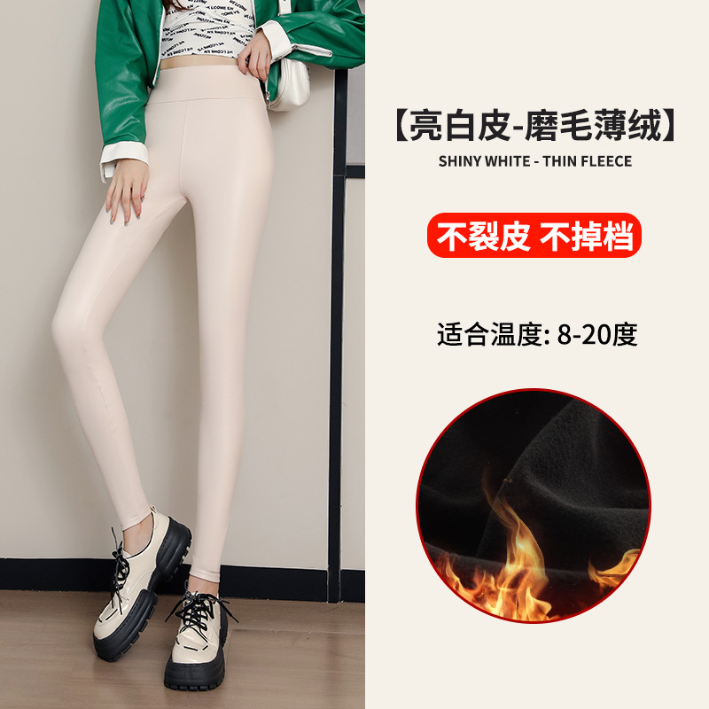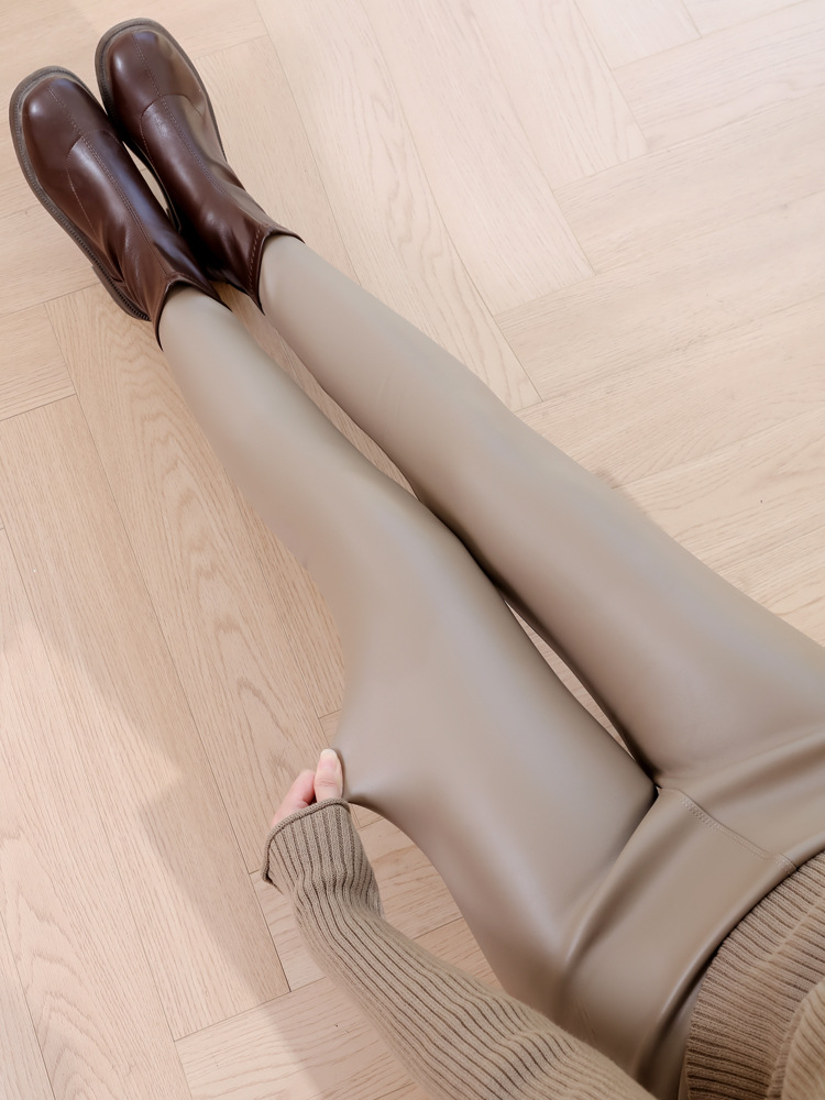 대외 무역 국경 간 양가죽 바지 여성용 외부 착용 기모 두꺼운 레깅스 높은 허리 슬림 타이트 PU 가죽 따뜻한 바지스토어 가기