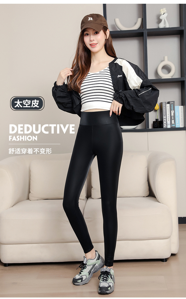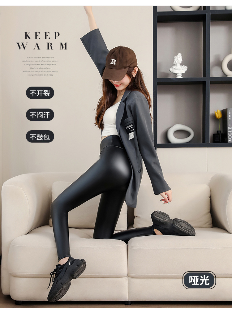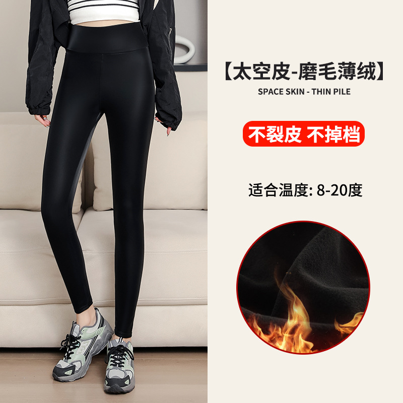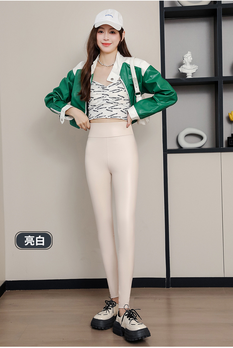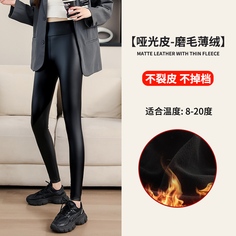 대외 무역 국경 간 양가죽 바지 여성용 외부 착용 기모 두꺼운 레깅스 높은 허리 슬림 타이트 PU 가죽 따뜻한 바지스토어 가기
