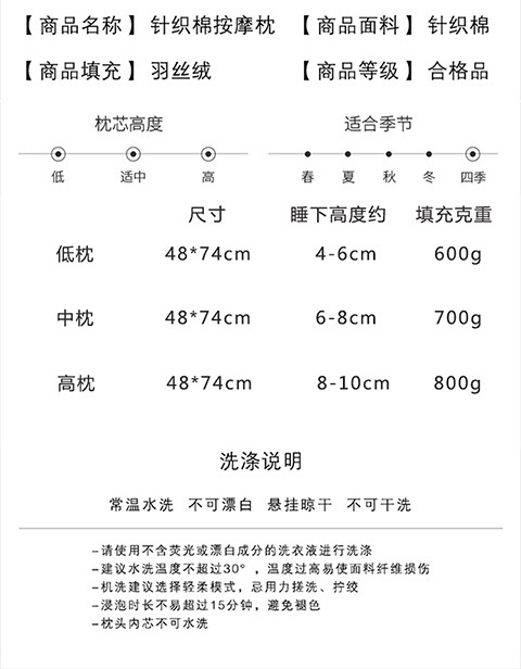 • 48x74 업그레이드된 항균 마사지 베개-화이트 [600g 낮은 베개]