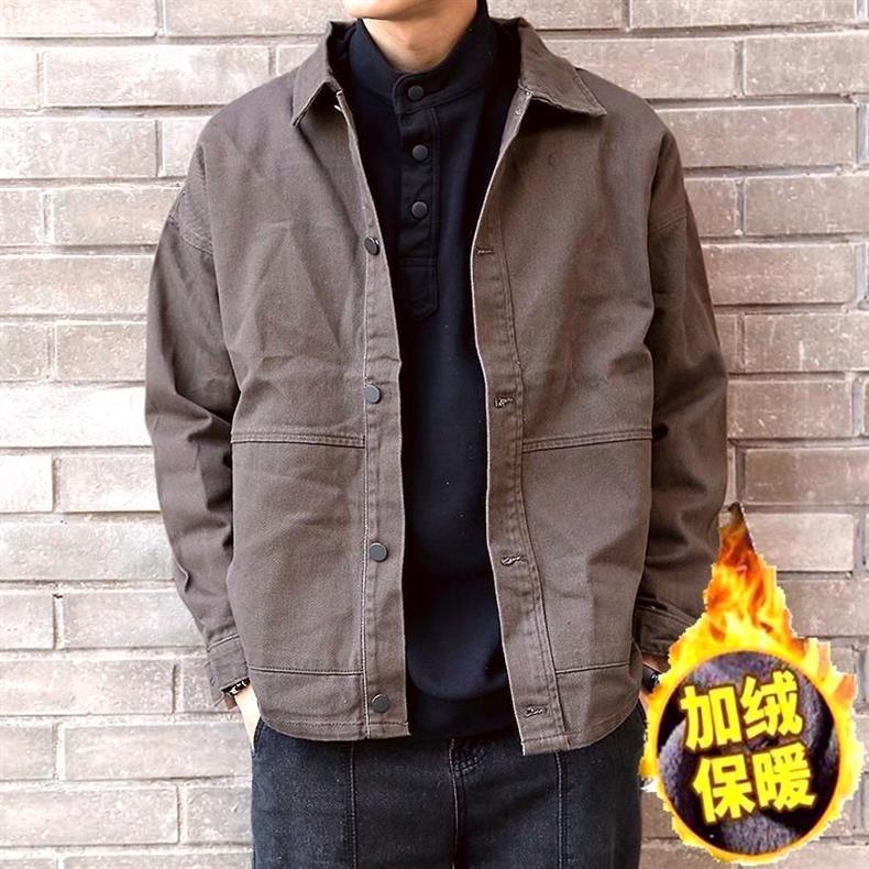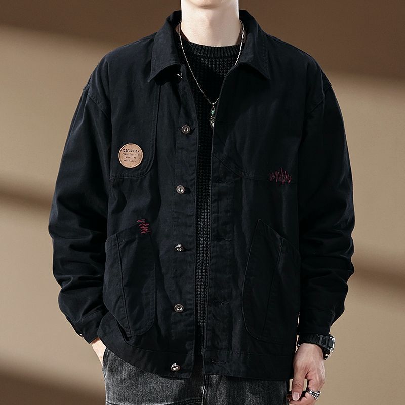 하이 엔드 센스 작업복 재킷 남성 봄과 가을 패션 브랜드 루즈 아메리칸 스타일 레트로 옷깃 재킷 캐주얼 리퍼 핸섬 데님 재킷스토어 가기