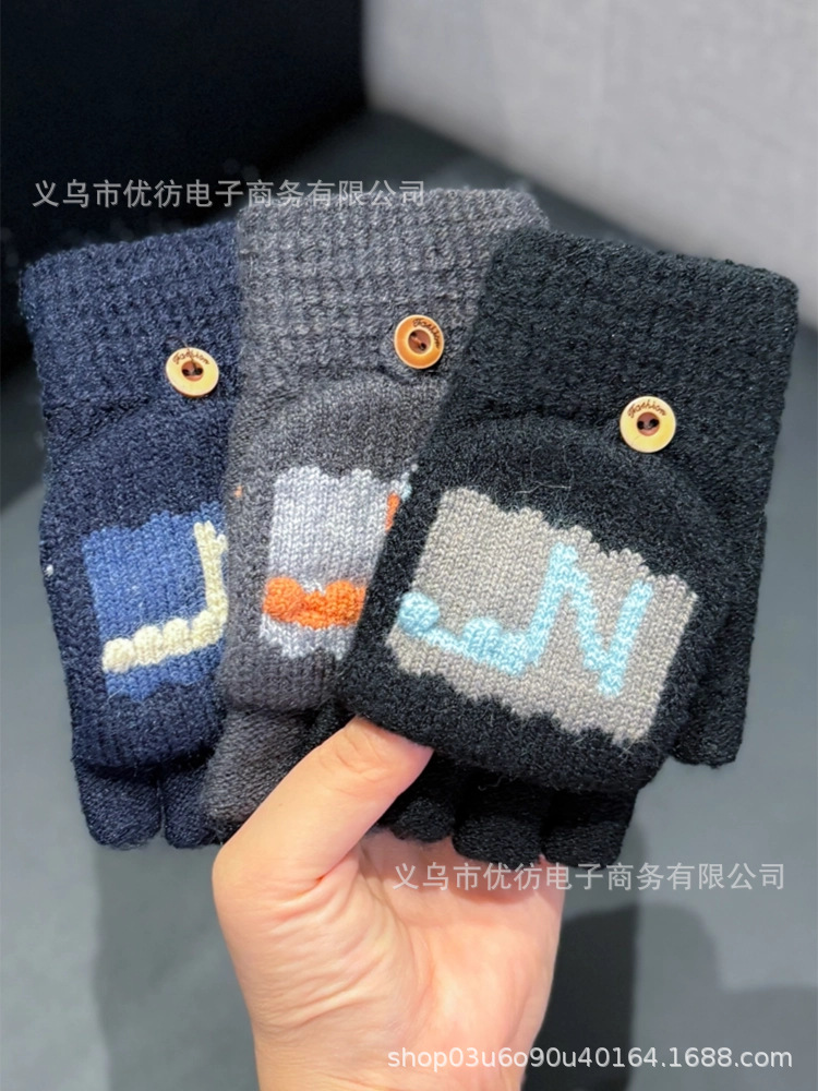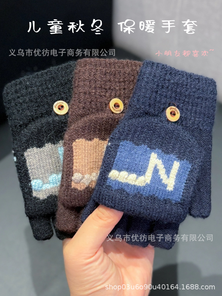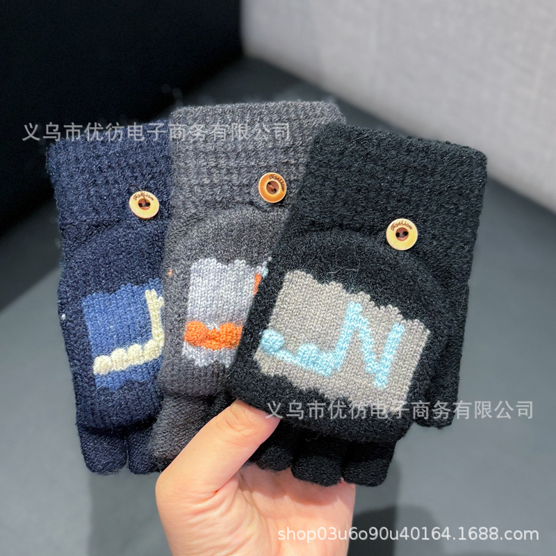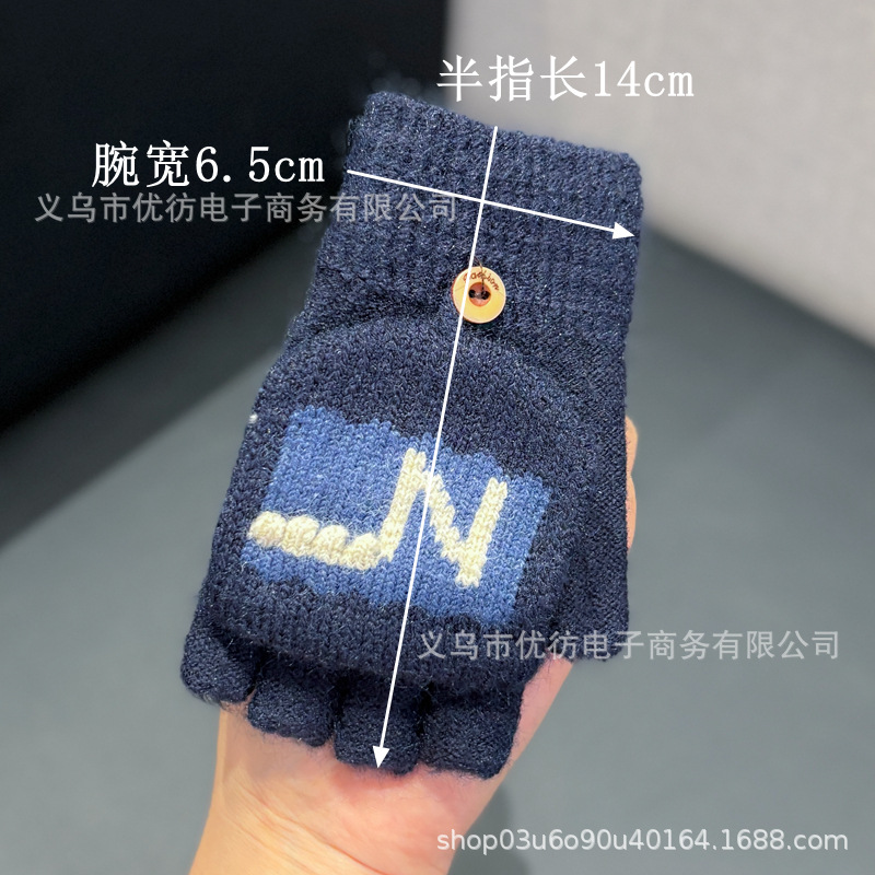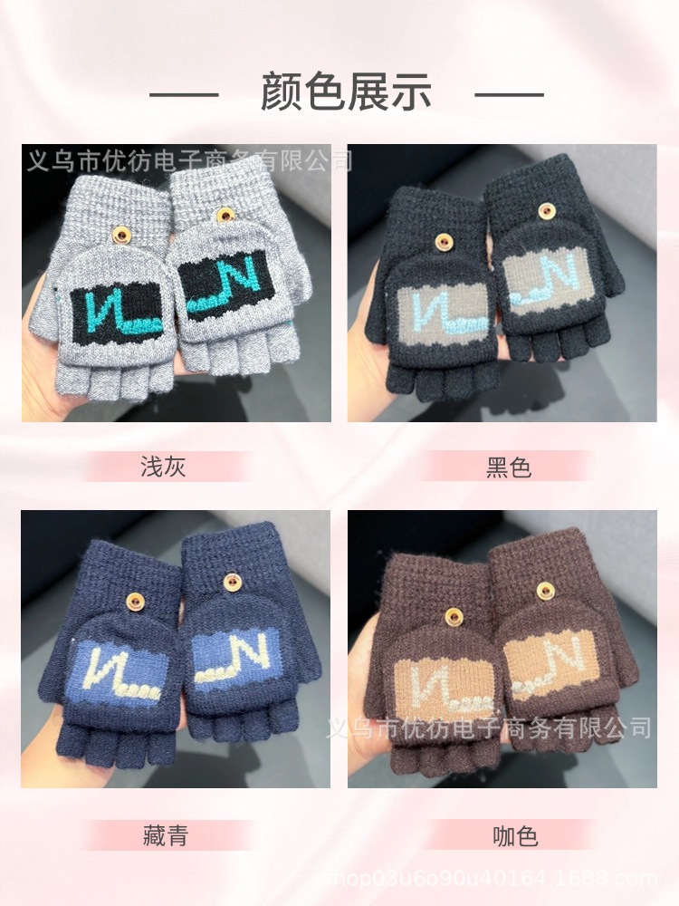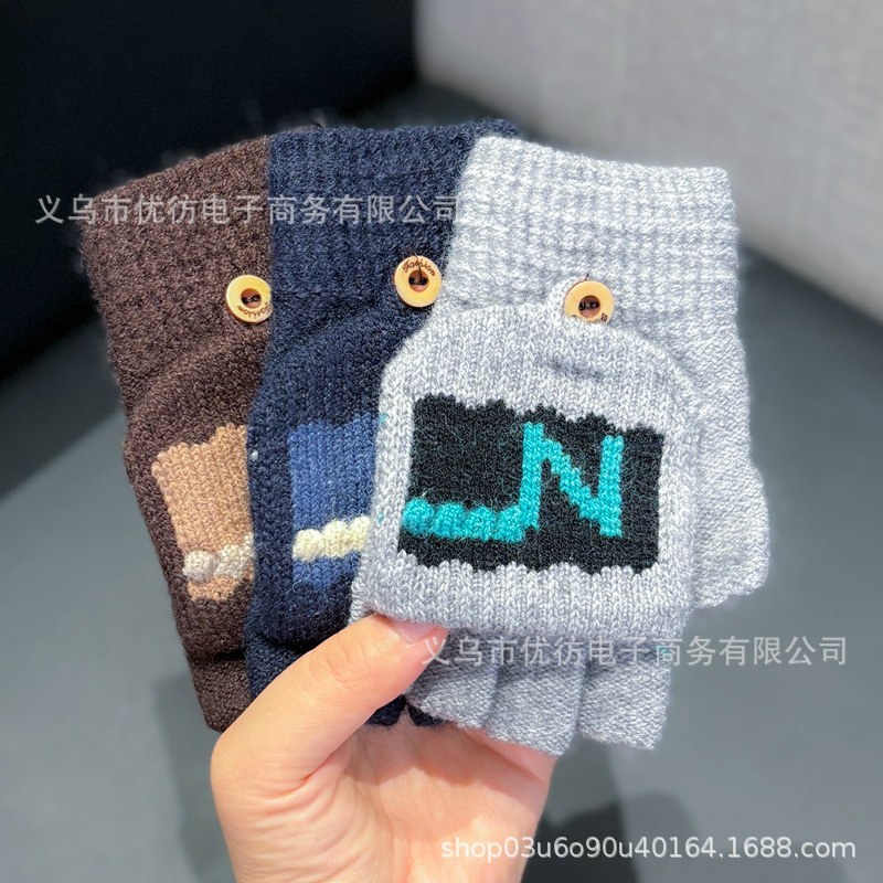 남학생 장갑은 따뜻한 가을과 겨울 남학생 반 손가락 플랩 이중 목적 소년 방풍 및 방한 두꺼운 손가락을 씁니다.스토어 가기