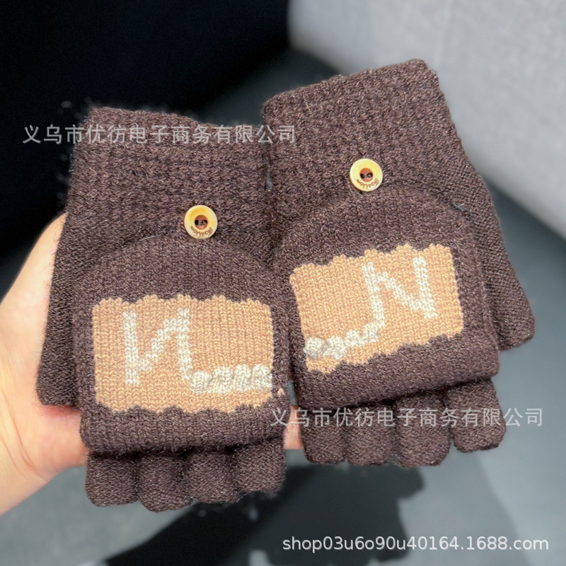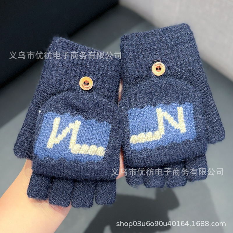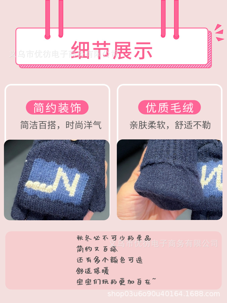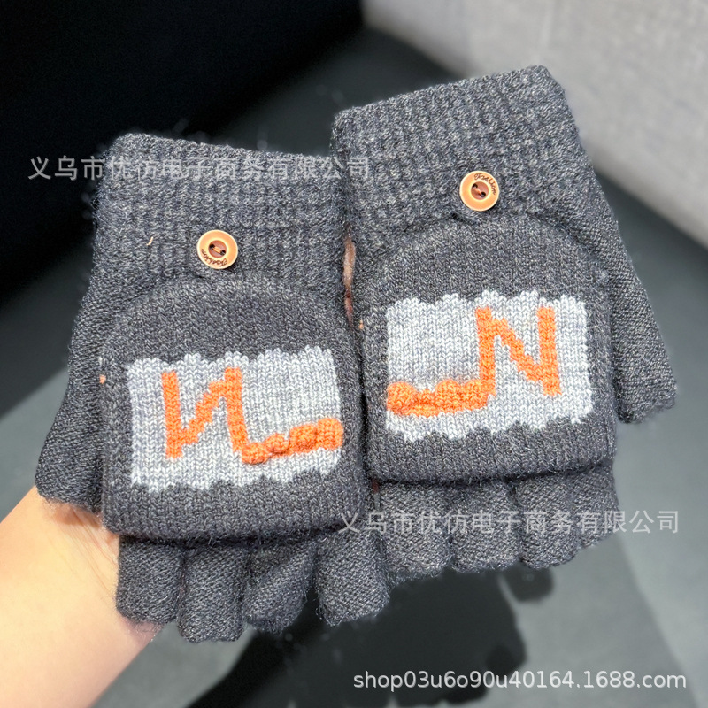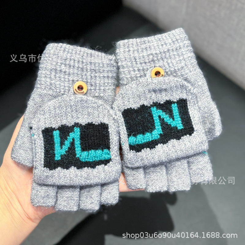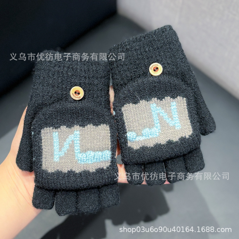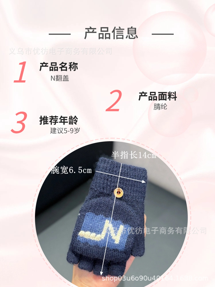 남학생 장갑은 따뜻한 가을과 겨울 남학생 반 손가락 플랩 이중 목적 소년 방풍 및 방한 두꺼운 손가락을 씁니다.스토어 가기