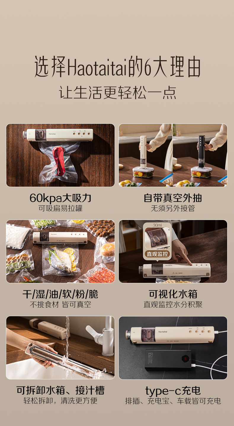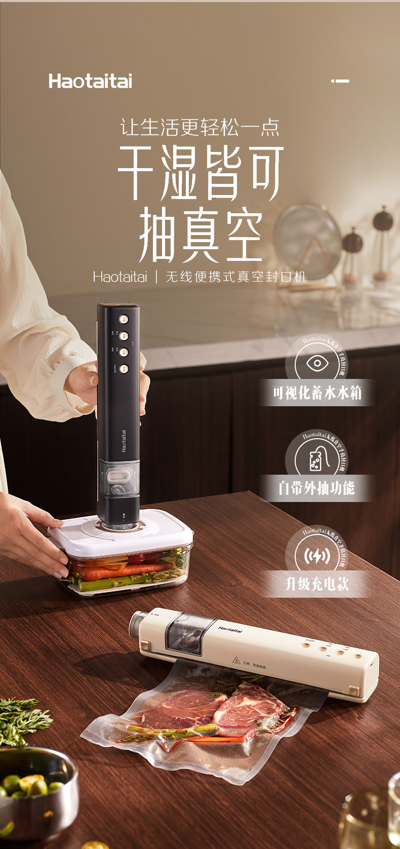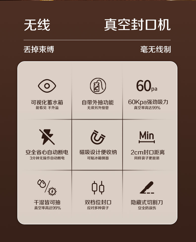시각적 무선 진공 밀봉 기계 충전 휴대용 가정용 진공 밀봉 기계 식품 보존 건조하고 젖은 이중 목적