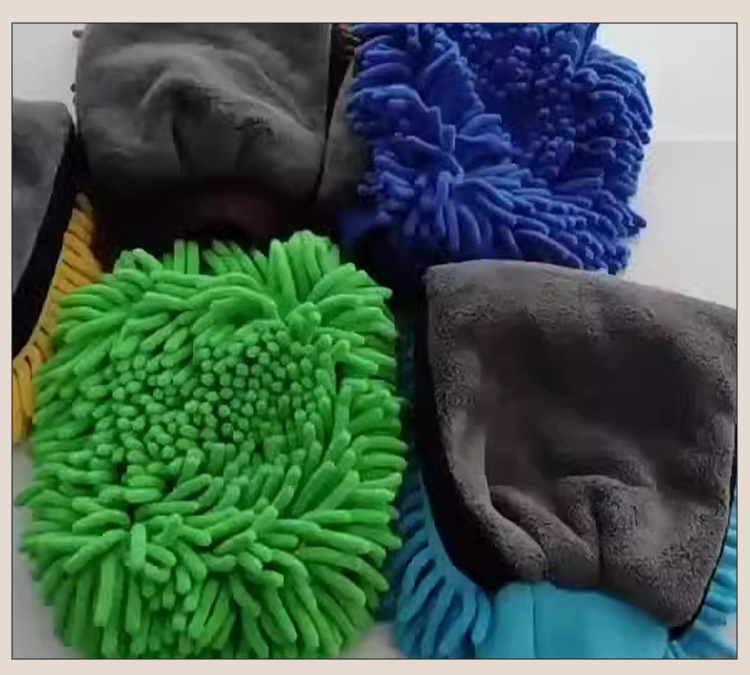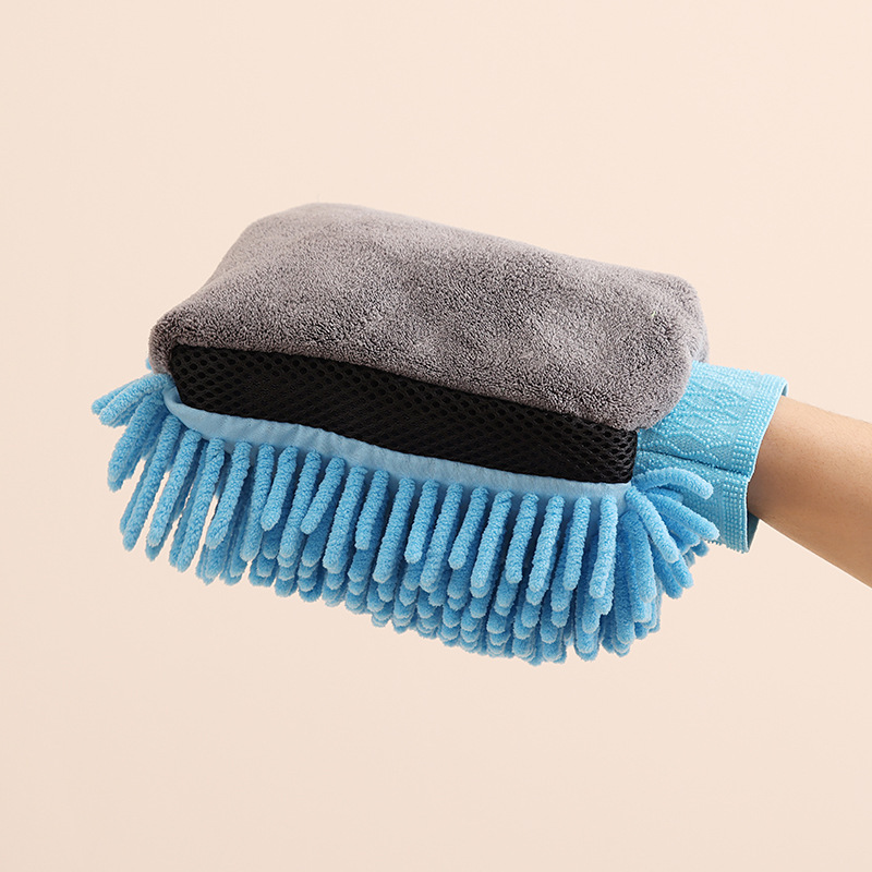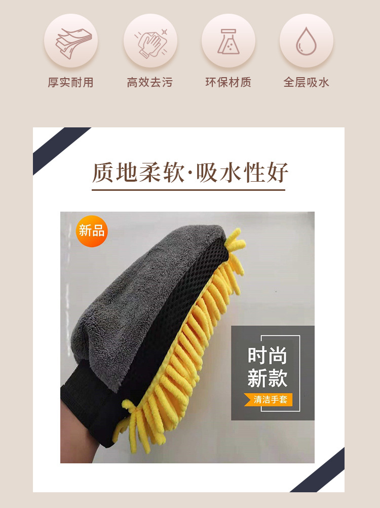 새로운 세차 산호 양털 chenille 이중 목적 자동차 청소 장갑 집안 먼지 제거 곰 발 세차 특수 도구스토어 가기