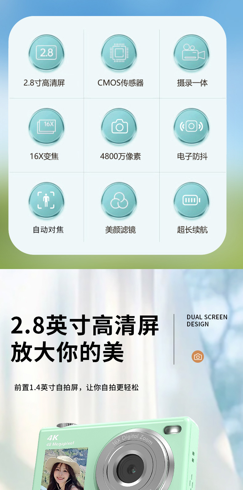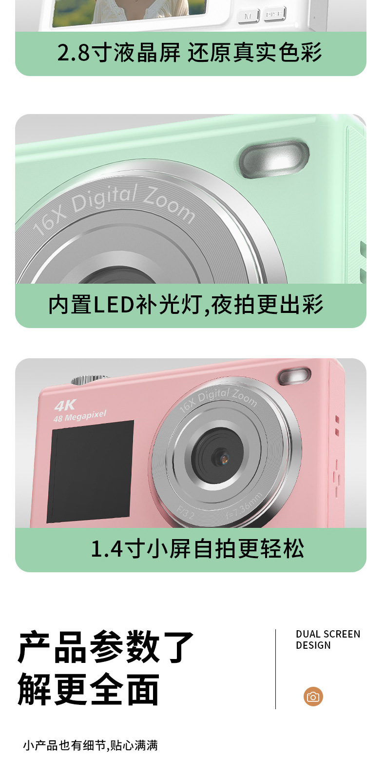 HD 디지털 학생 카메라 캠퍼스 엔트리 레벨 카드 카메라 작은 휴대용 어린이 카메라 여행 국경