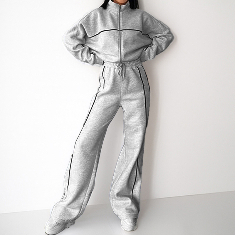 2026 봄 신상 유럽 및 미국 스타일 캐주얼 반하이넥 지퍼 가디건 레이스업 패션 스포츠웨어 세트 여성용