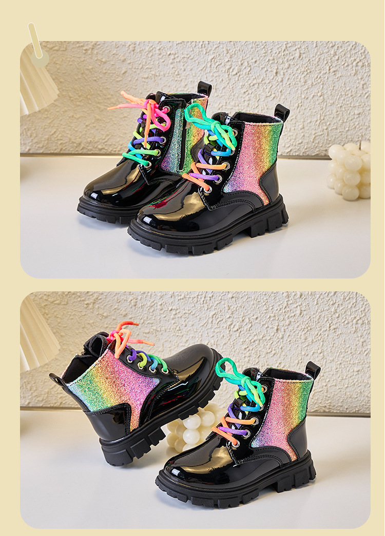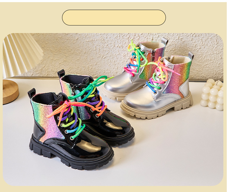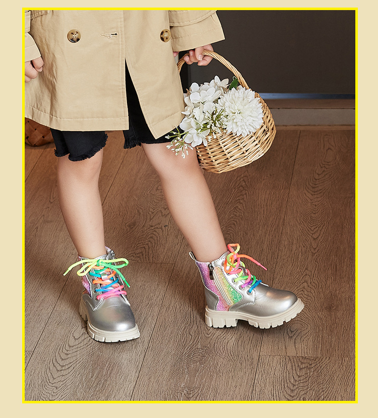튀긴 거리 세련된 소녀 마틴 부츠 2024 가을 및 겨울 새로운 어린이 신발 어린이 짧은 부츠 공주 중간 및 큰 어린이 짧은 부츠