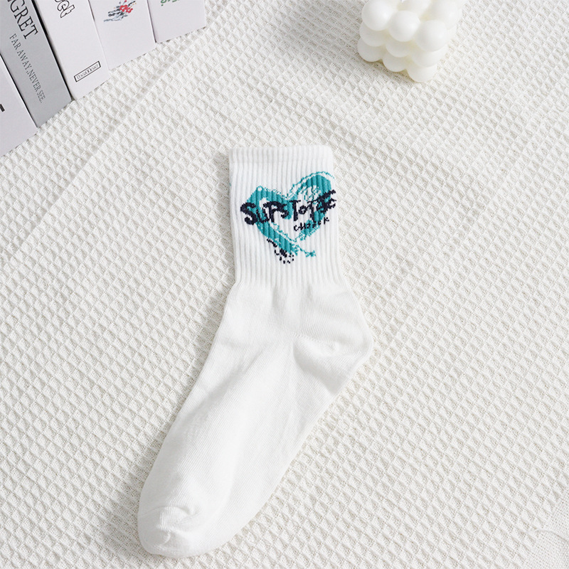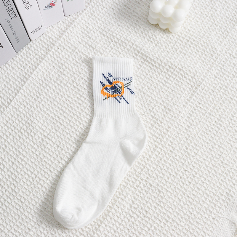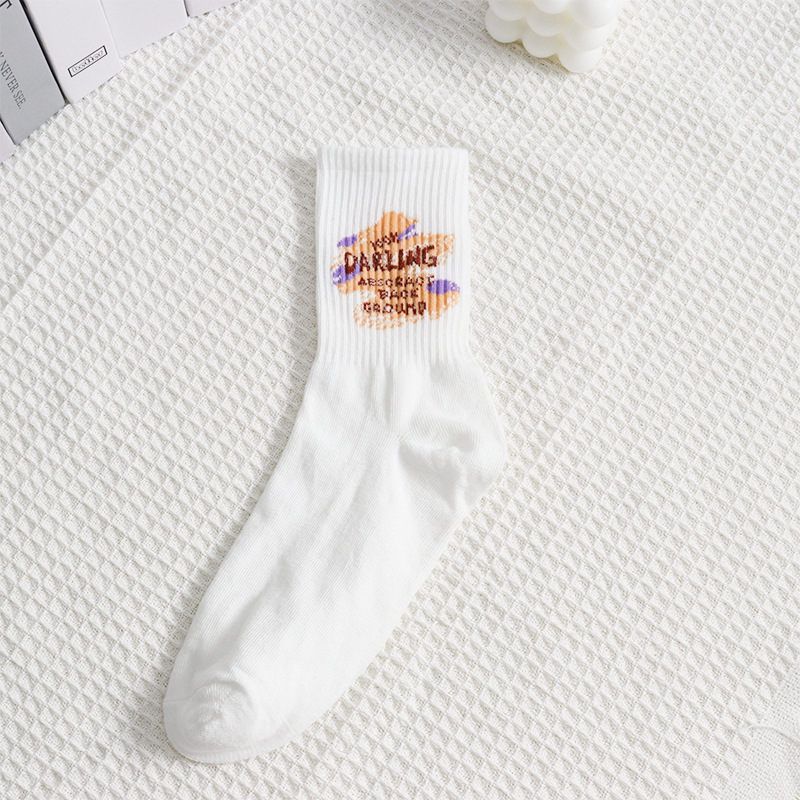 Xinmao 공장 도매 패션 그래피티 청소년 캐주얼 스포츠 양말, 화이트 심플 반항적 컬리지 스타일 양말