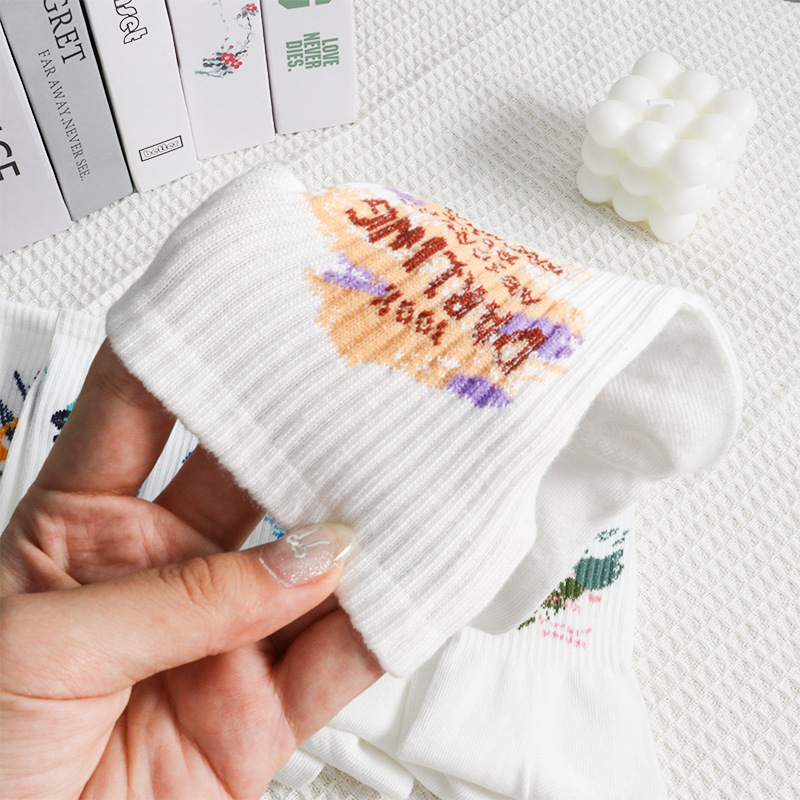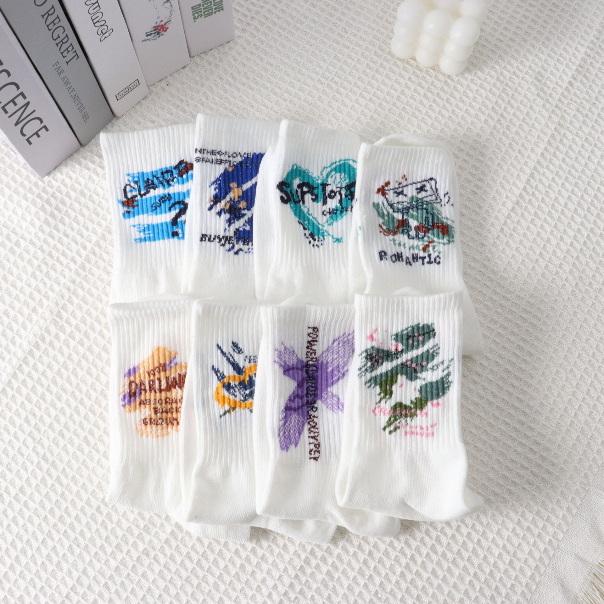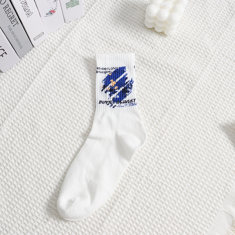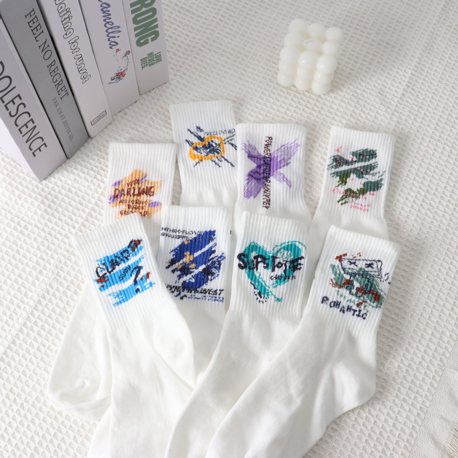 Xinmao 공장 도매 패션 그래피티 청소년 캐주얼 스포츠 양말, 화이트 심플 반항적 컬리지 스타일 양말스토어 가기